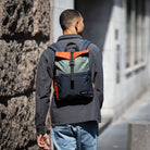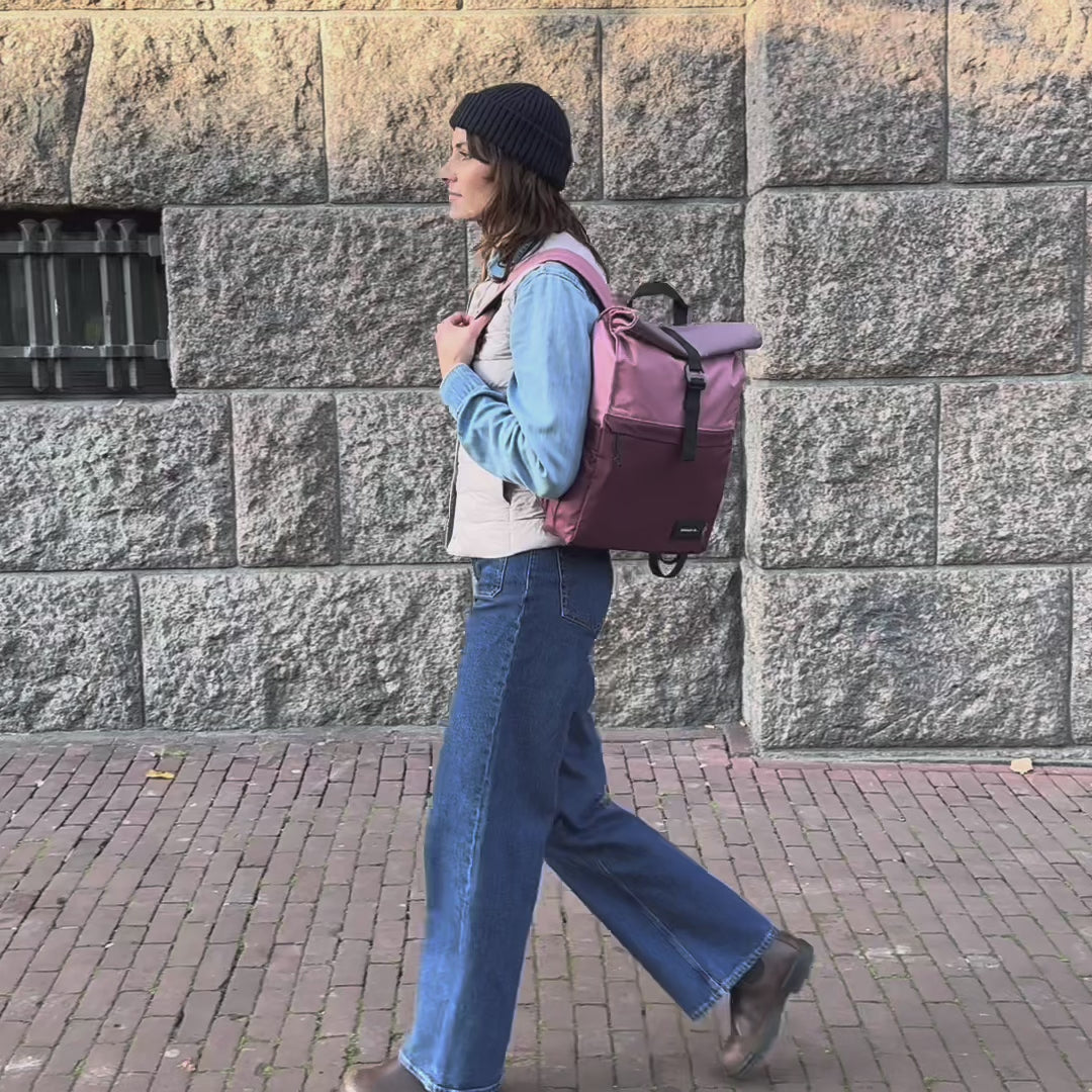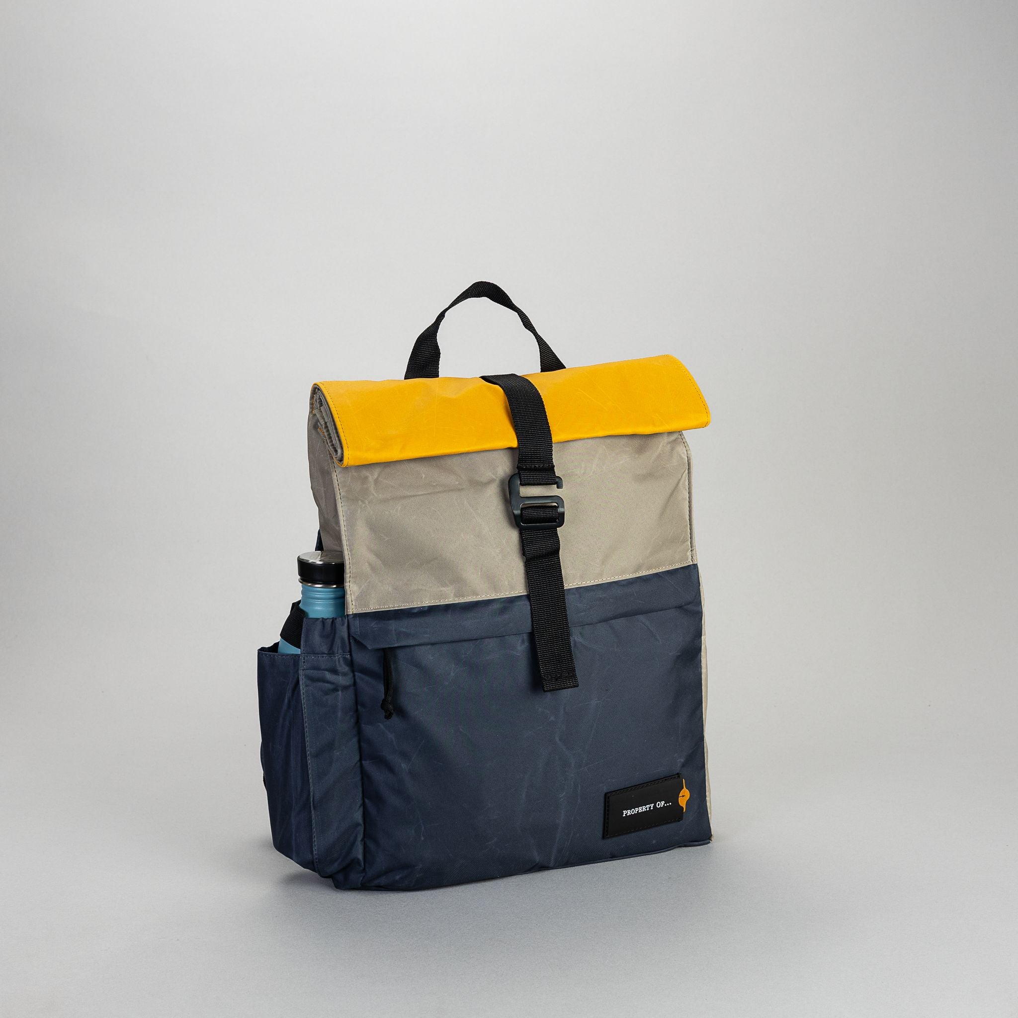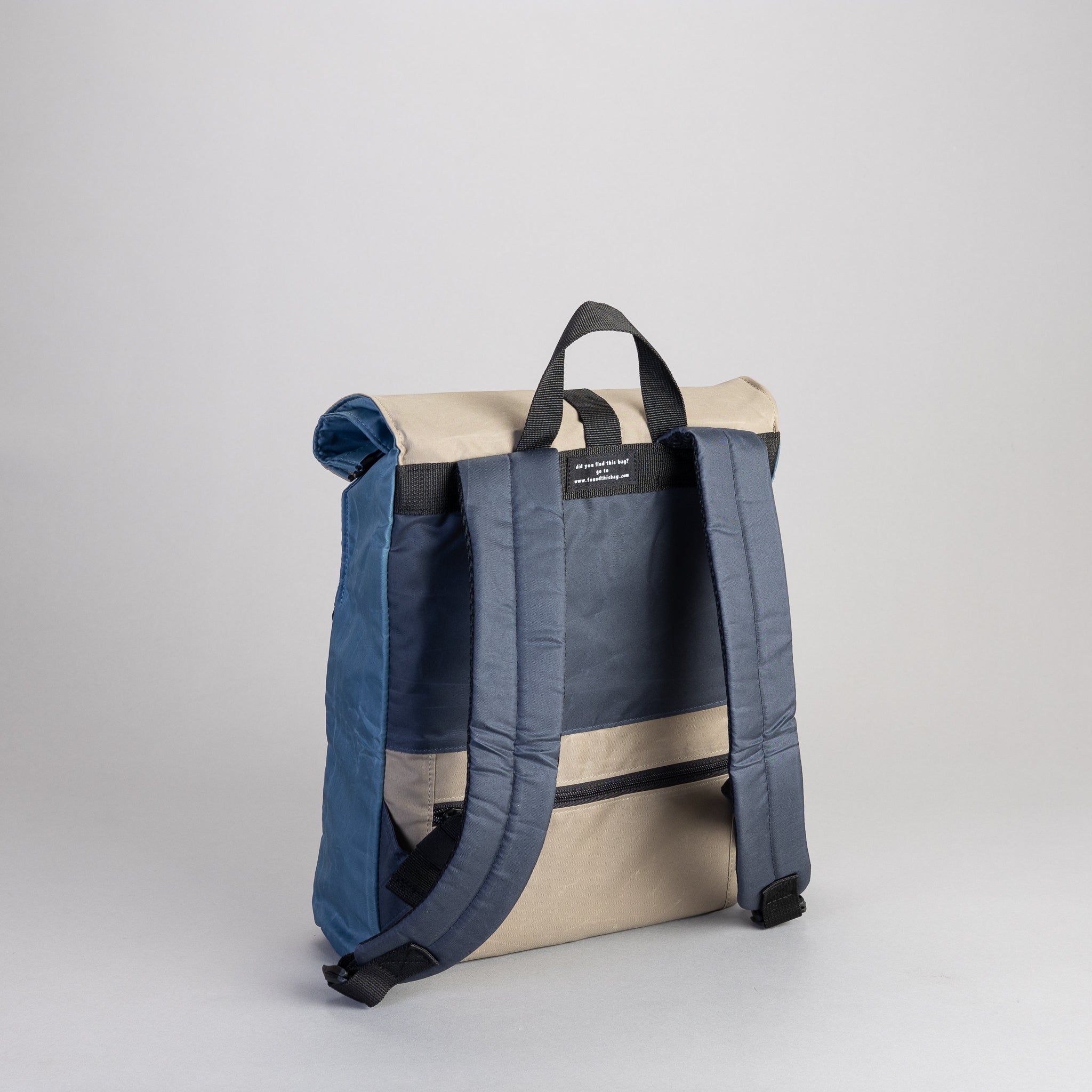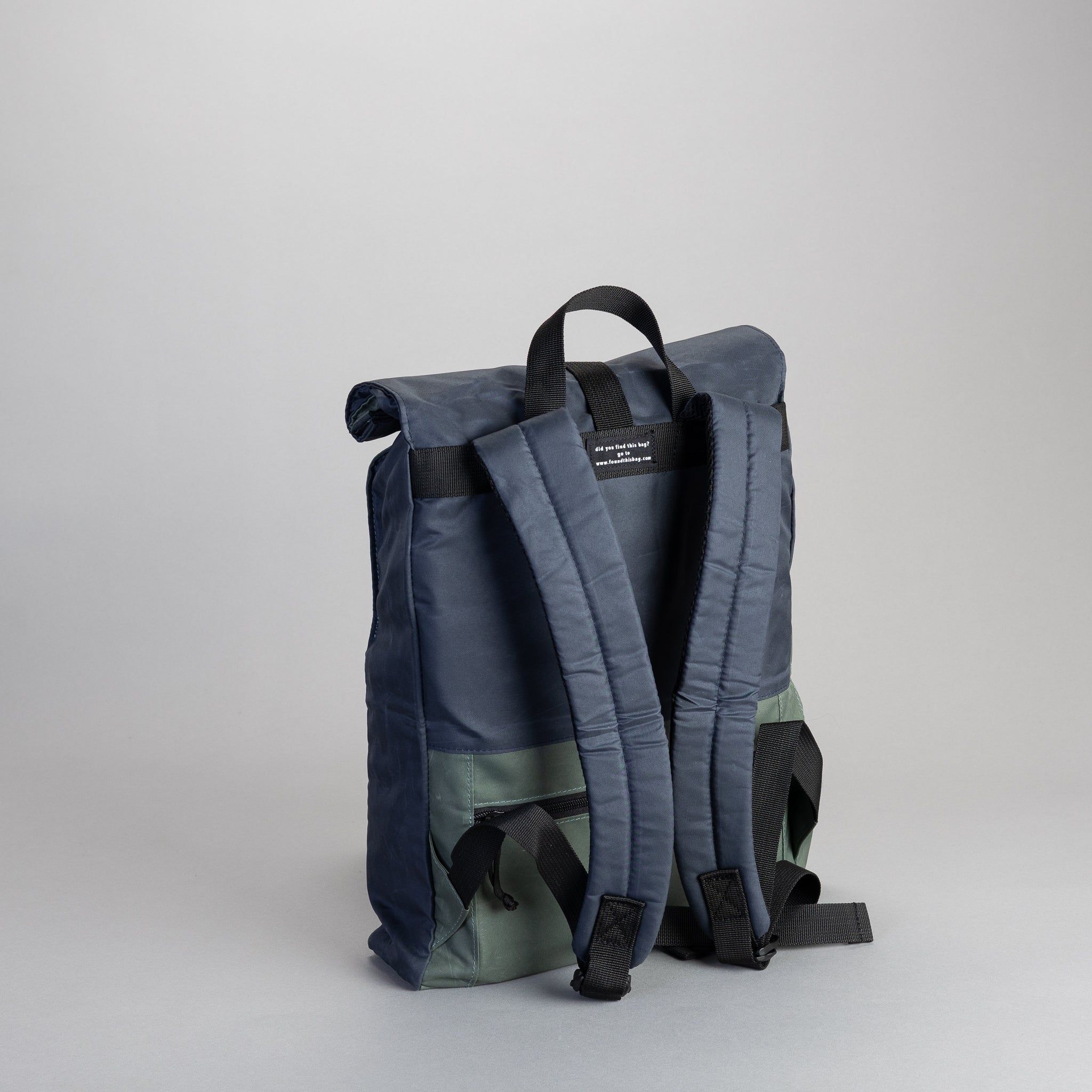 The fabric is made for 100% from recycled PET bottles and woven as a twill which makes it extra strong. The wax layer on the fabric gives it a nice patina.