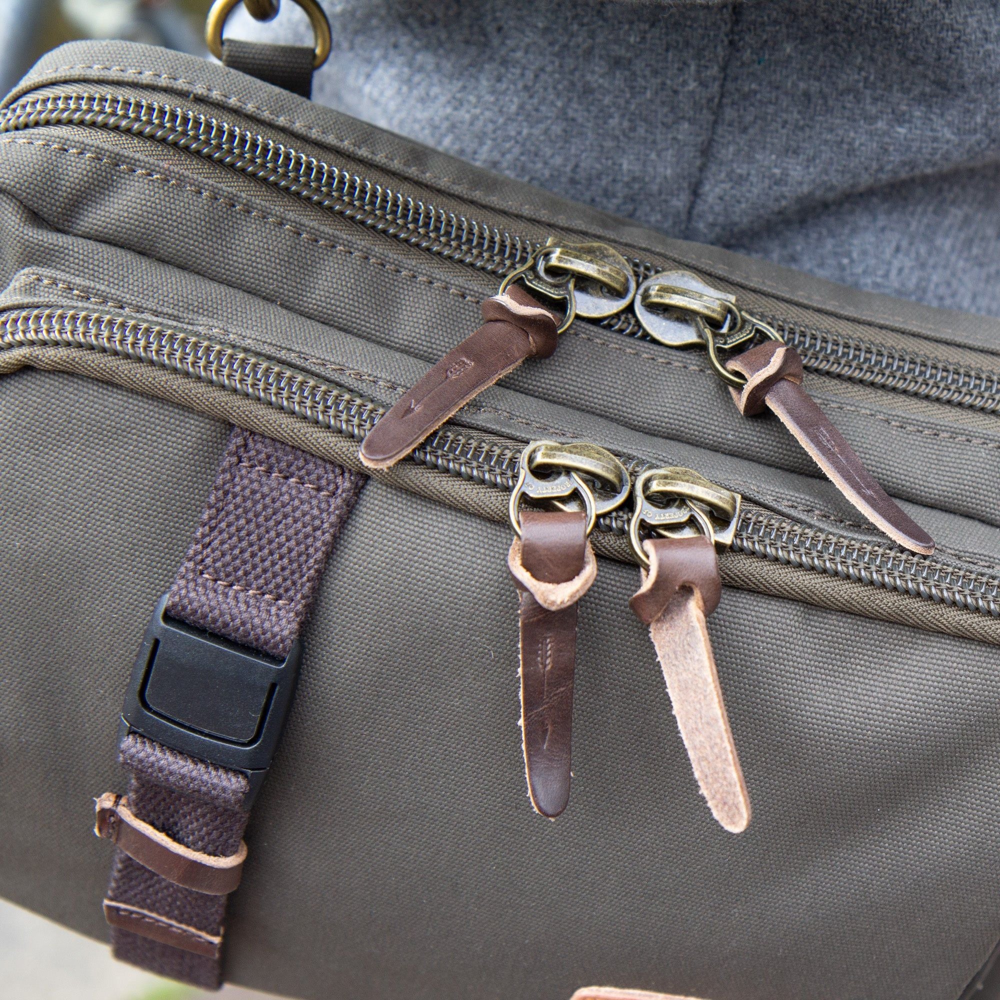 The Rem Day Bag is perfect for storing your everyday items. It has 3 large zip-up front pockets and a spacious back pocket for everything you may need. The nylon canvas outer makes it durable and weatherproof, and the leather trims give it a more classic look.