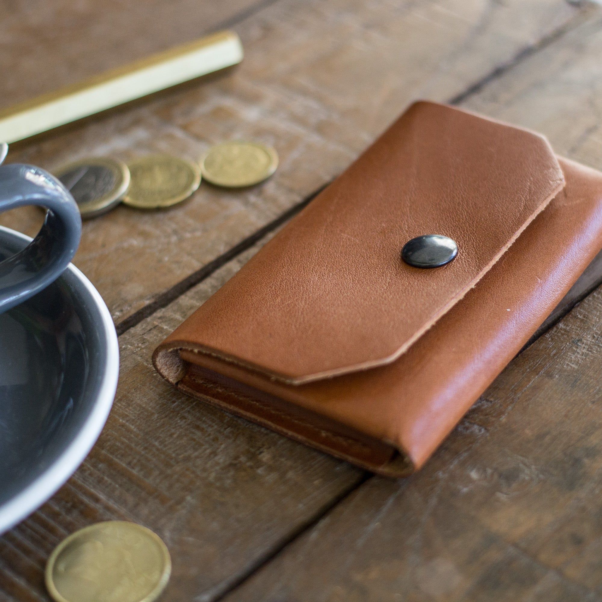 Milo Cardholder - a simple cardholder made of high-quality cow leather. Designed to age beautifully and is hand-made in Holland. Make it unique with your initials.