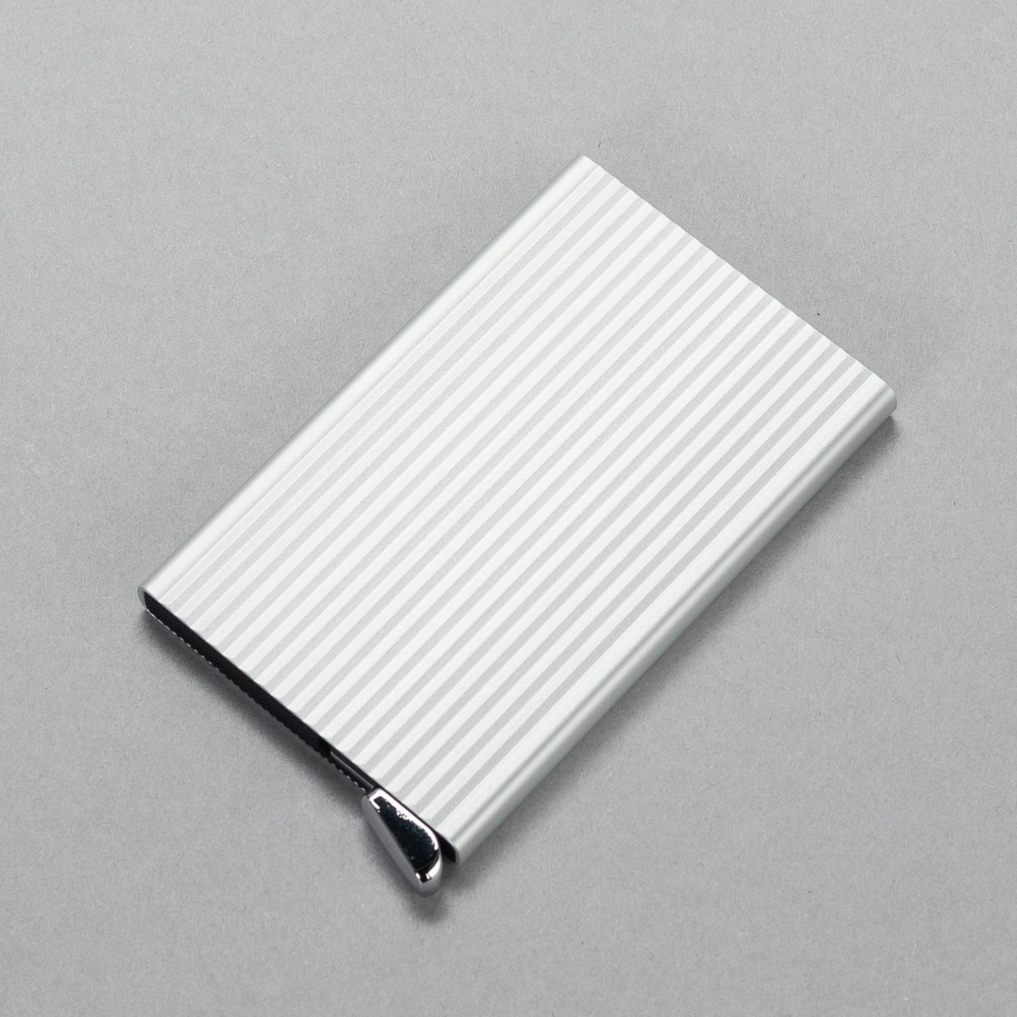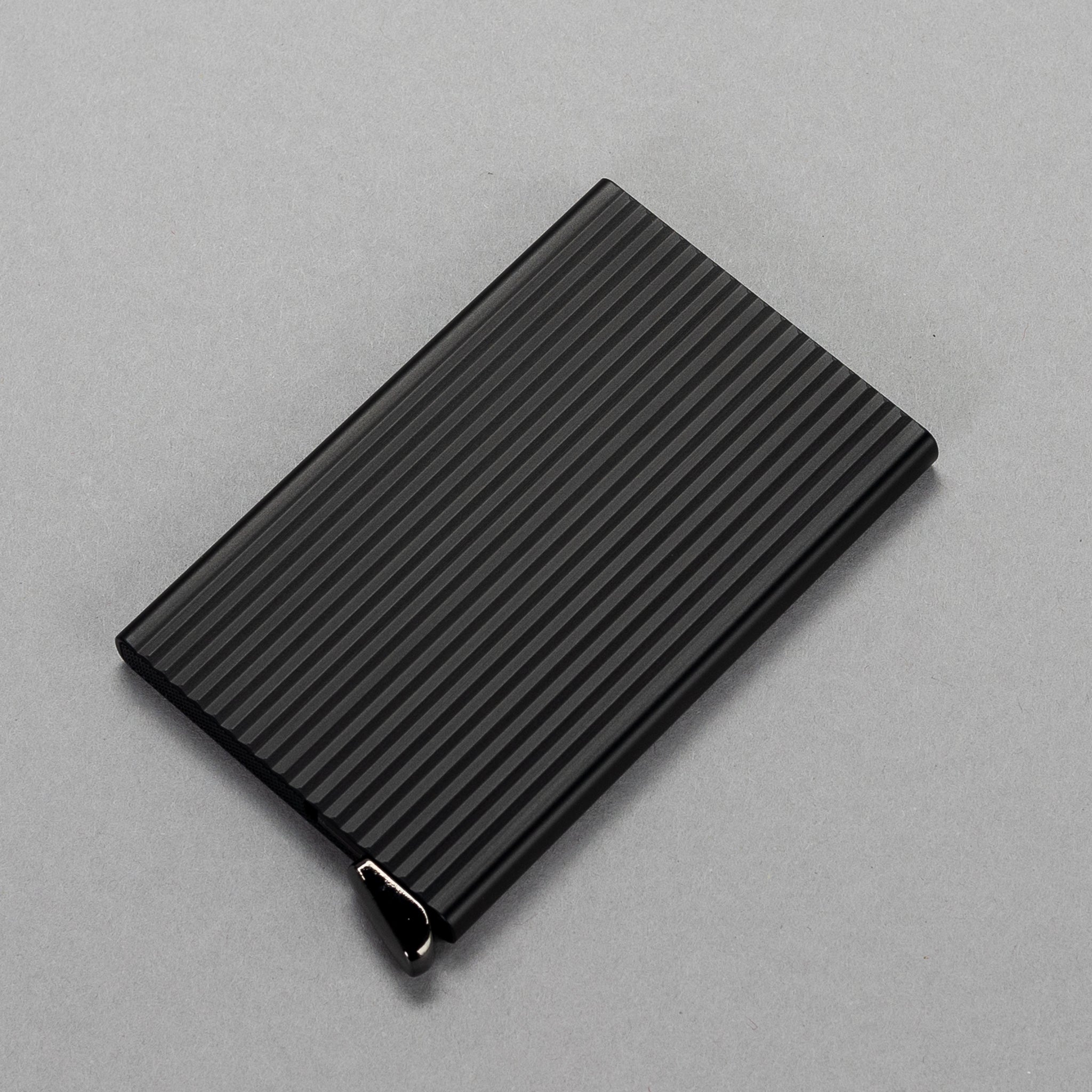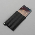 The patented mechanism allows you to slide out your cards with one simple motion, ready for immediate use. The aluminum casing protects from bending, breaking, and unwanted wireless communication (RFID protection)