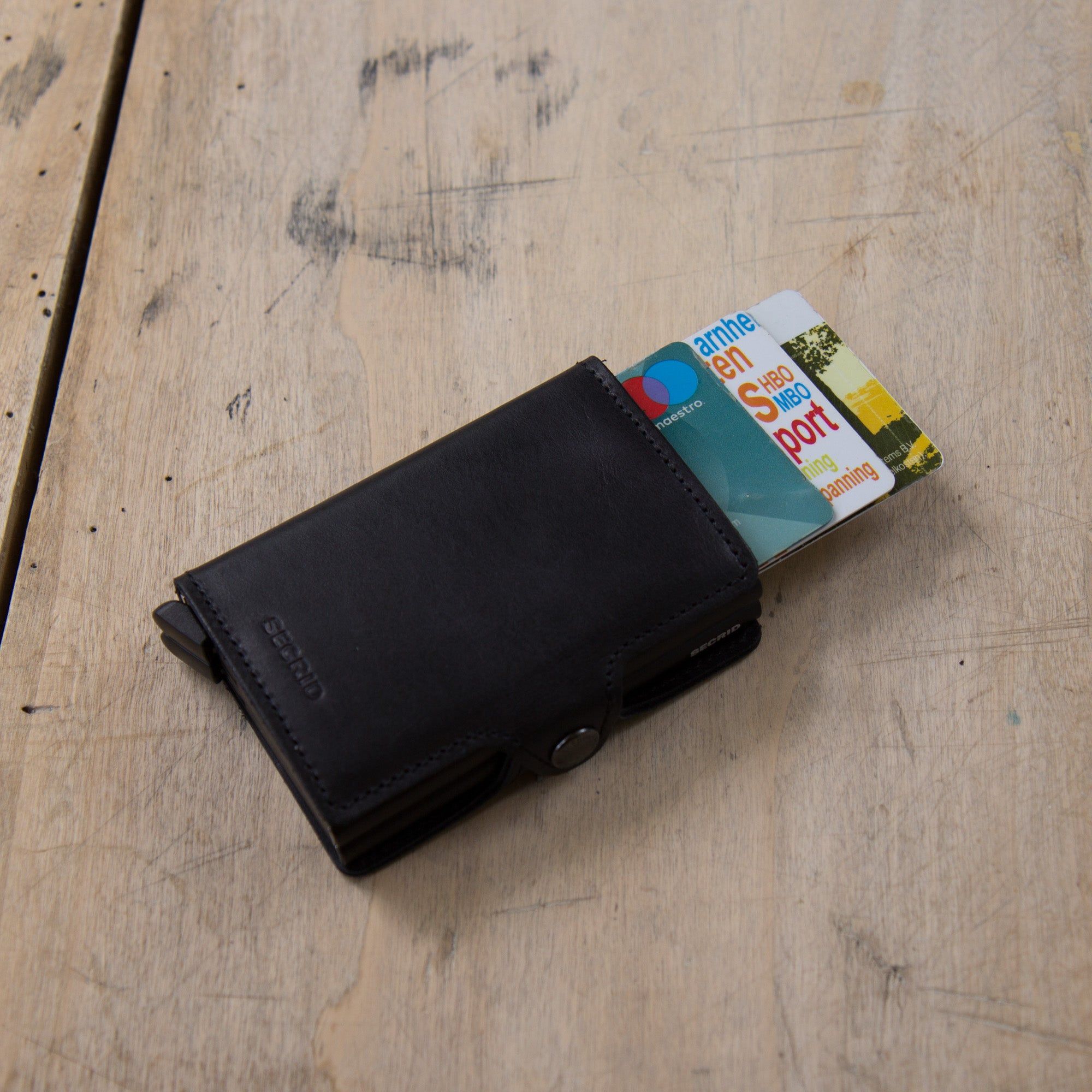 Two cardprotectors to hold double the content. The Twinwallet Original Black is a timeless all-purpose leather with a natural glossy finish that fits every style. So it’s no surprise that this leather is a lasting favourite. The Twinwallet carries up to 16 cards, banknotes and receipts, but remains compact in size. The patented mechanism allows you to slide out your cards with one simple motion, ready for immediate use. The aluminium protects from bending, breaking and unwanted wireless communication.