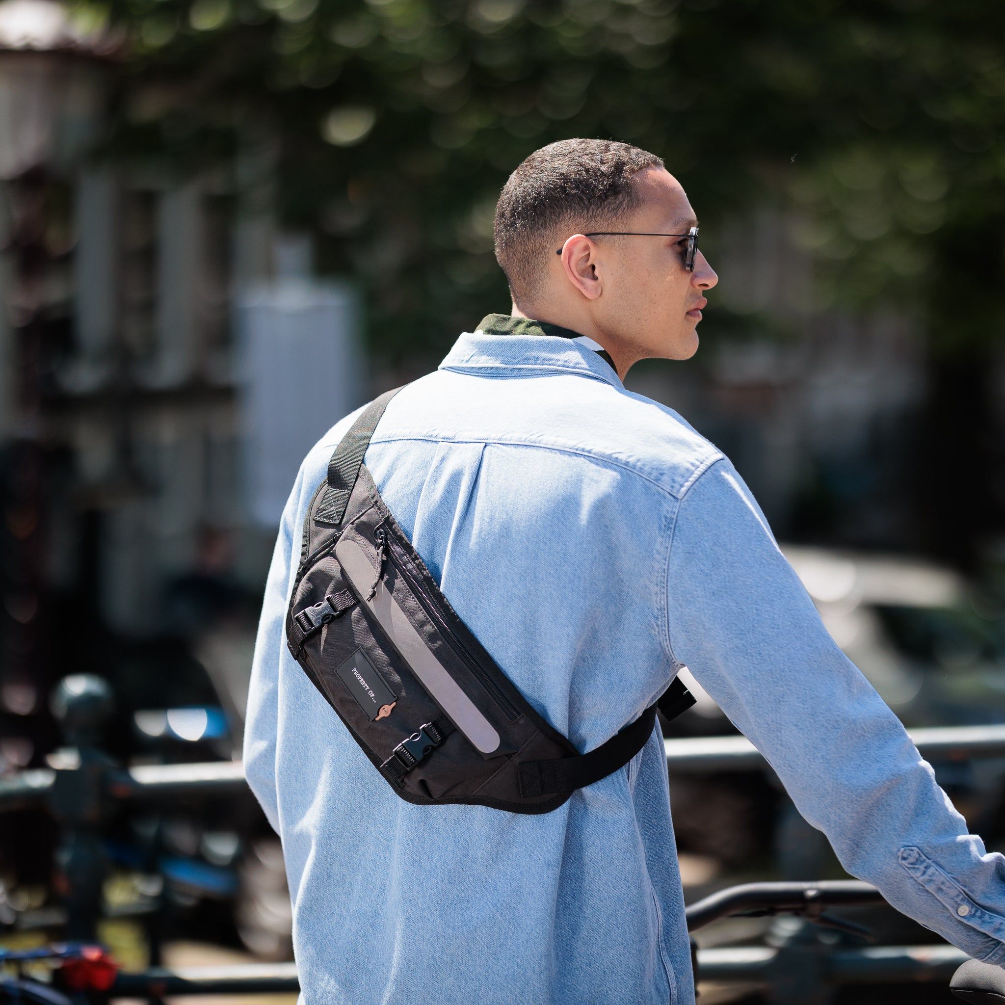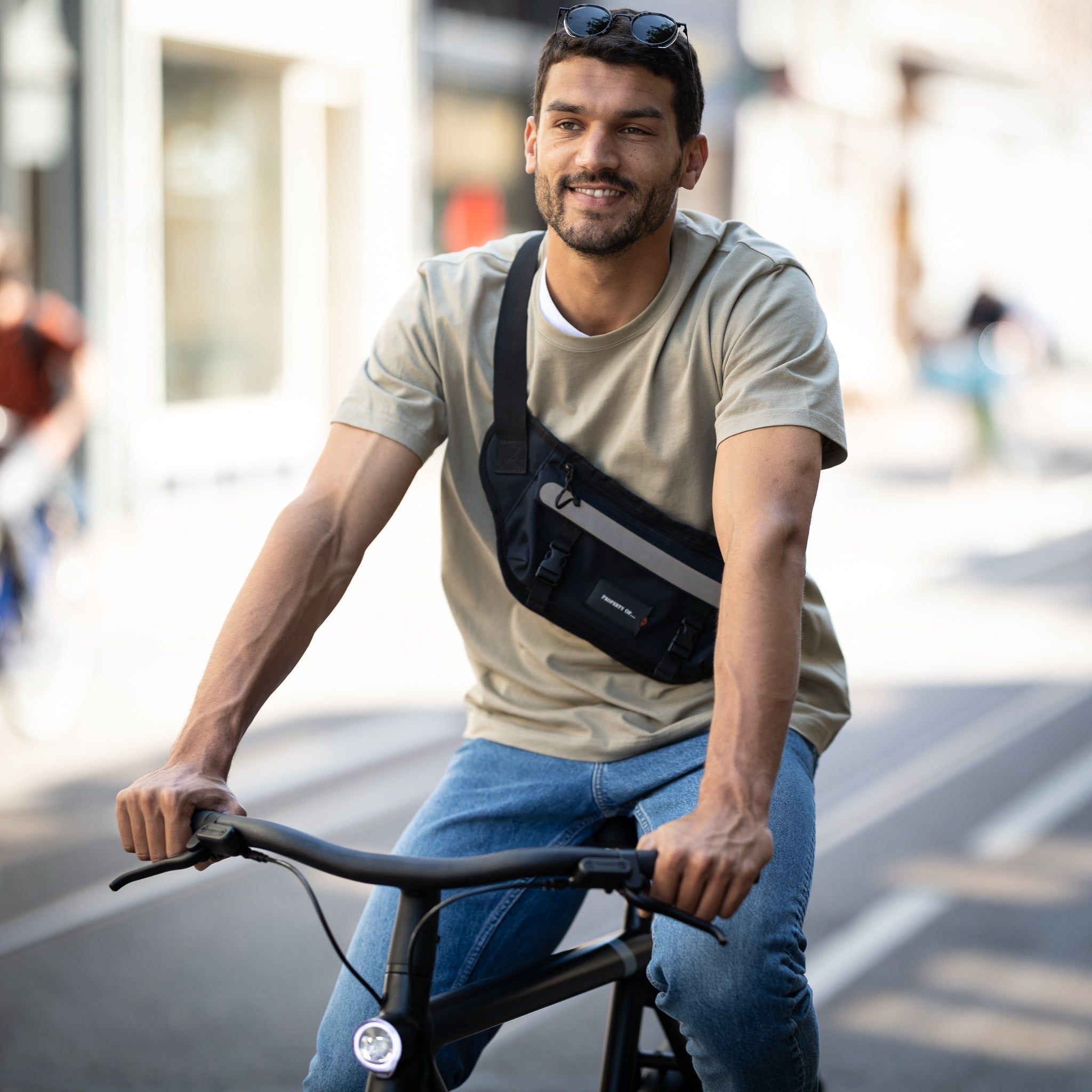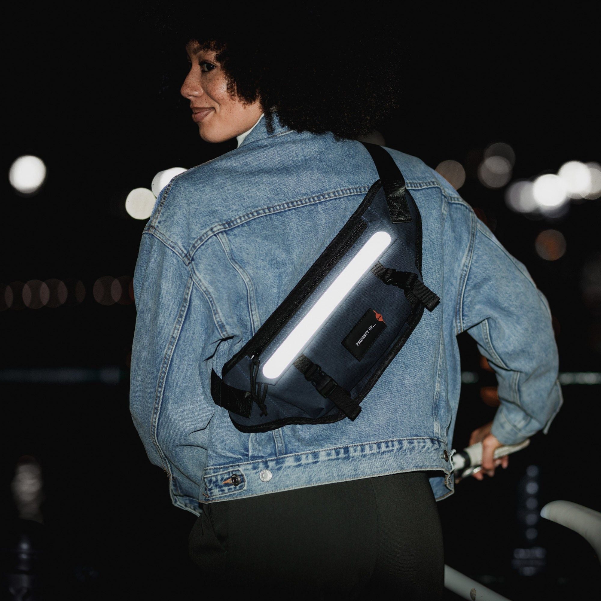 The reflective strips on the bottom of the bag and on the shoulder straps are of high brilliance quality and keep you safe at night.