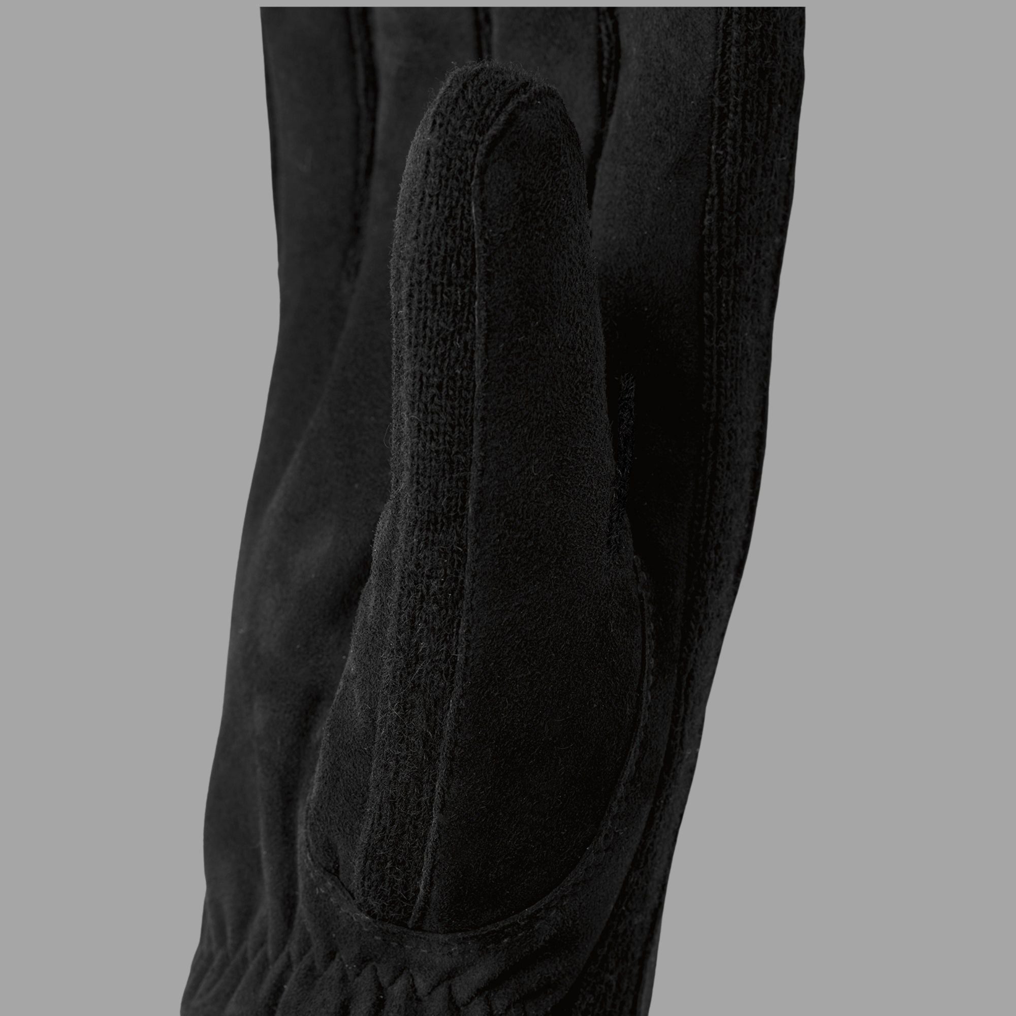 A sporty, comfortable glove that combines wool and the softest lambskin suede. The Geoffrey glove is a stylish, warming men’s glove for autumn and milder winter days. A side gusset and details are in rib-knitted wool jersey, while the backhand and palm are in Italian lambskin suede. Half piqué seams around the fingers make for a great fit and a ribbed cuff encloses the wrist.