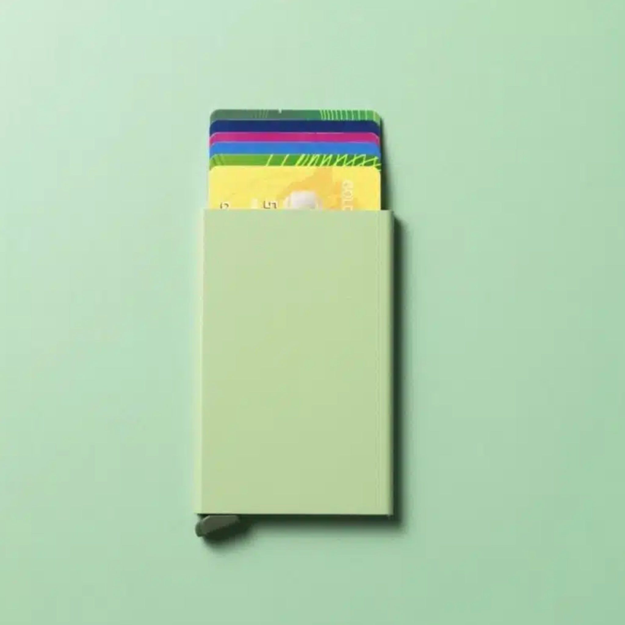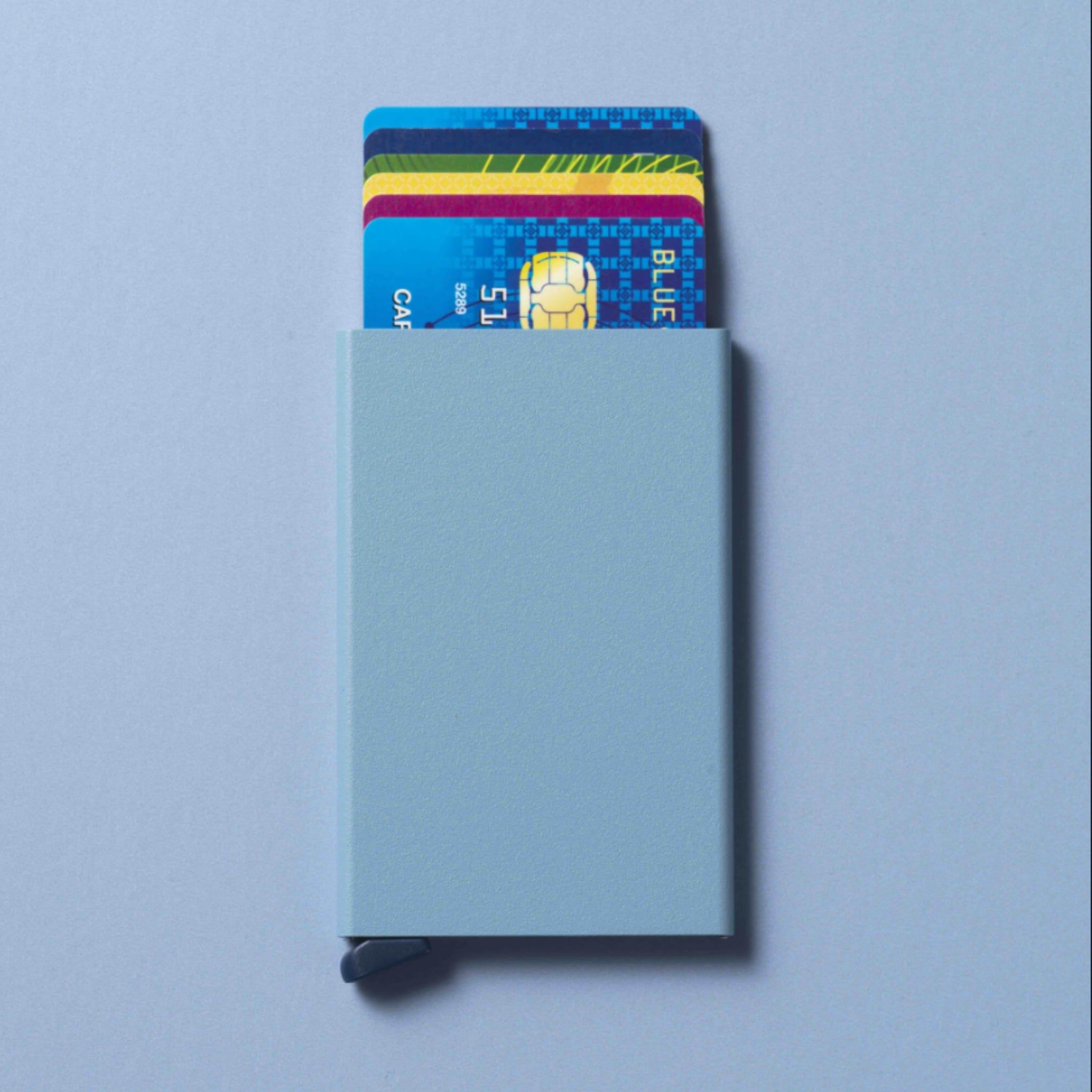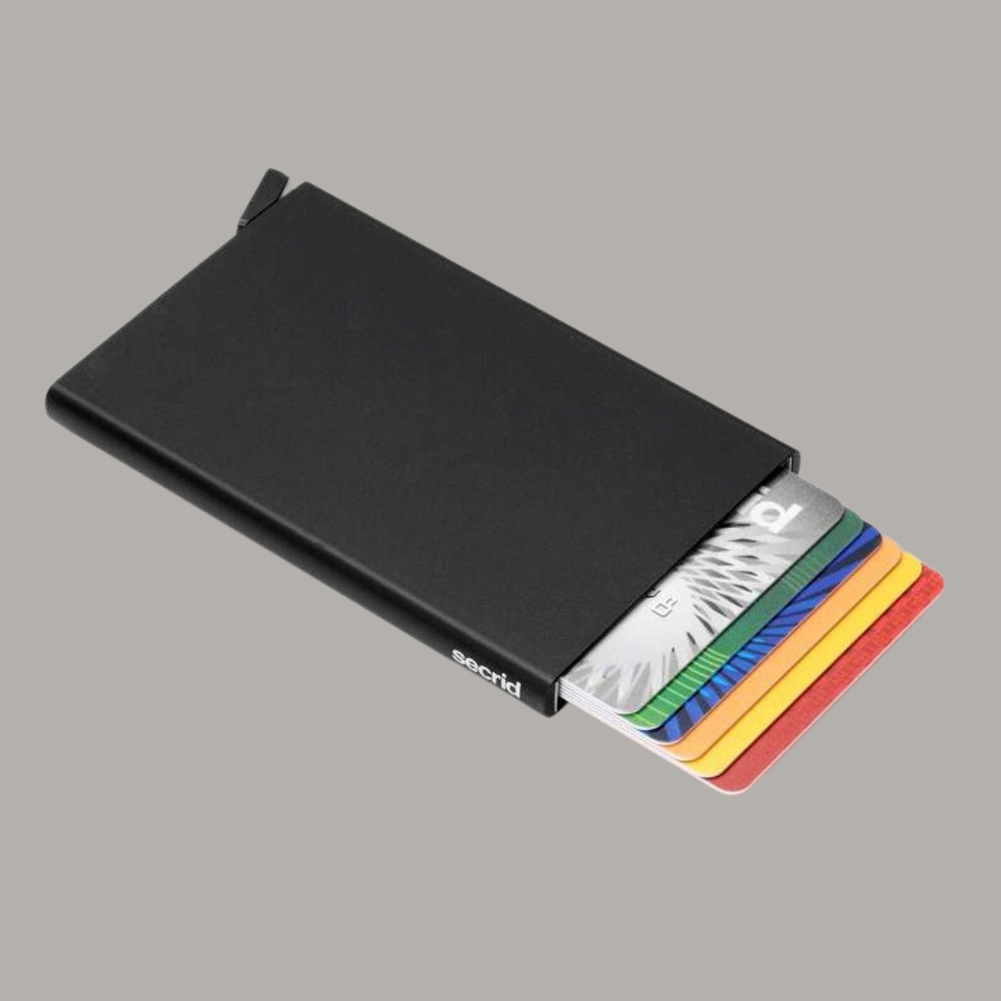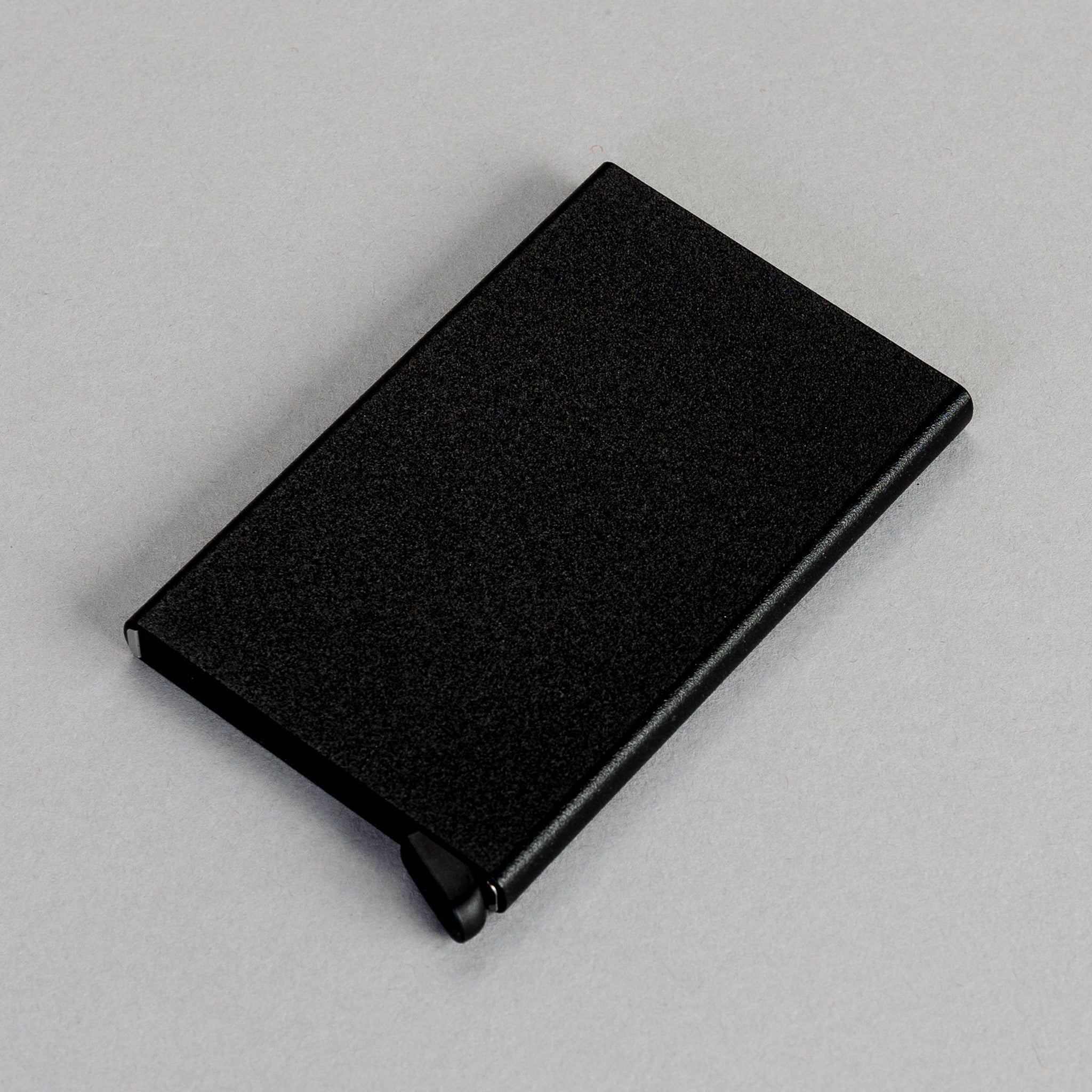 The patented mechanism allows you to slide out your cards with one simple motion, ready for immediate use. The aluminium casing protects from bending, breaking, and unwanted wireless communication (RFID protection)