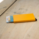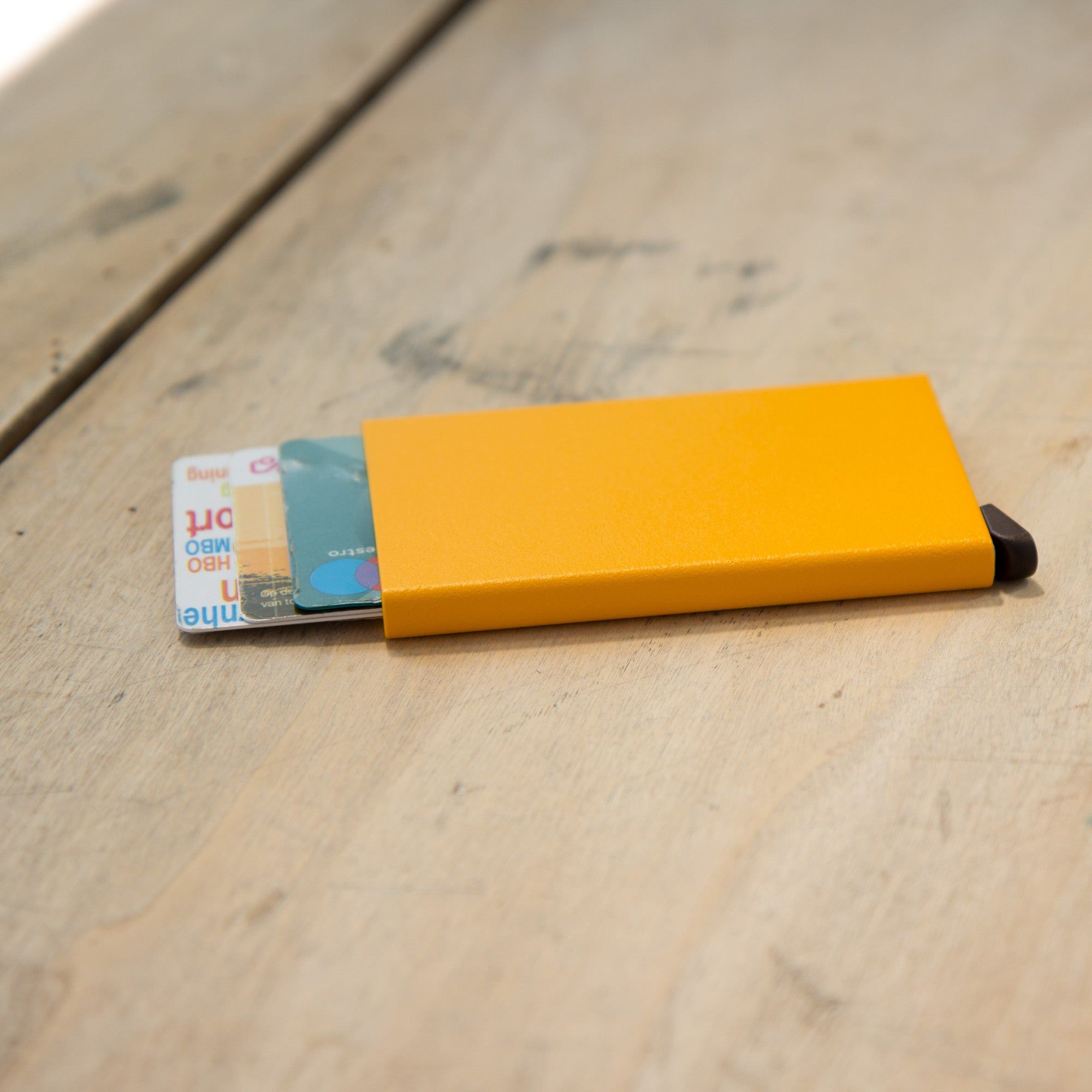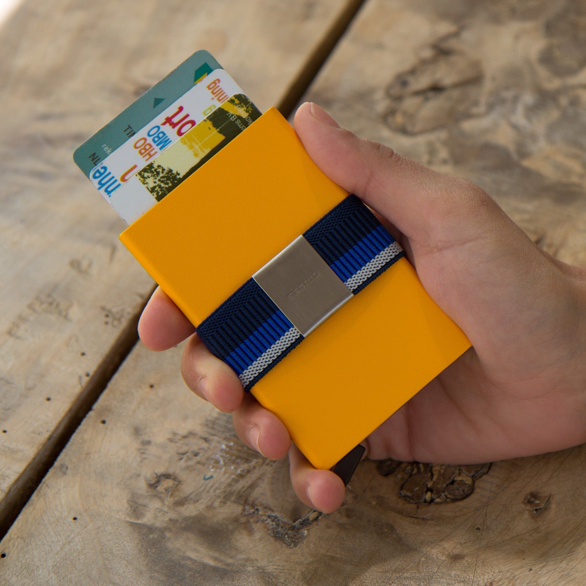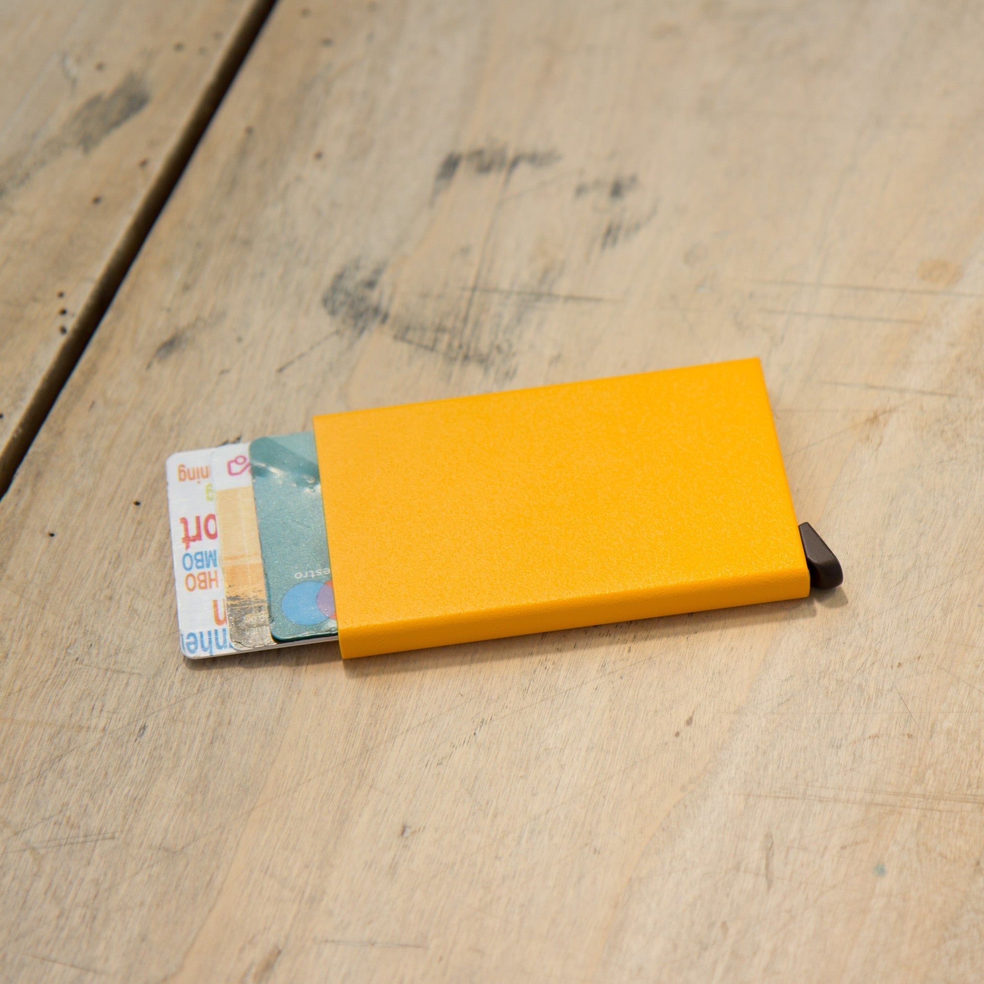 The patented mechanism allows you to slide out your cards with one simple motion, ready for immediate use. The aluminium casing protects from bending, breaking, and unwanted wireless communication (RFID protection)