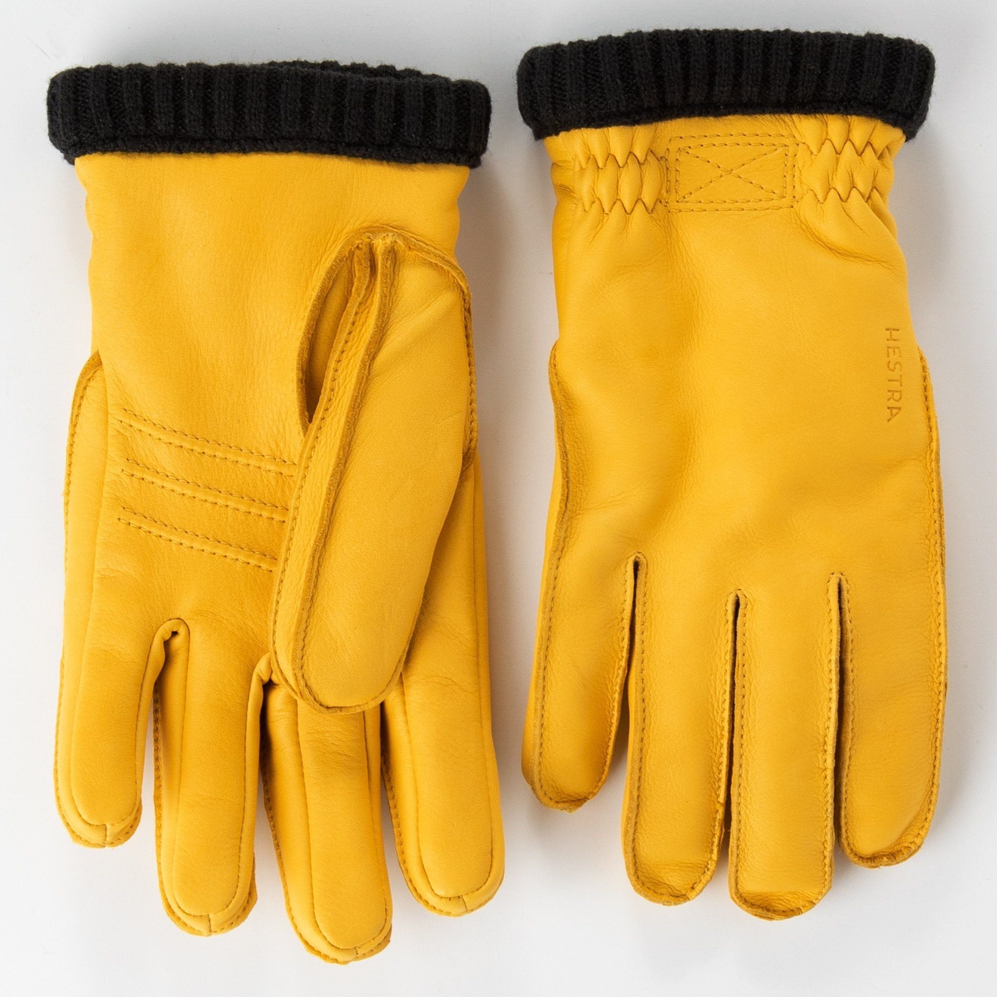 Soft, warm deerskin glove with a knitted cuff. Pre curved fit.