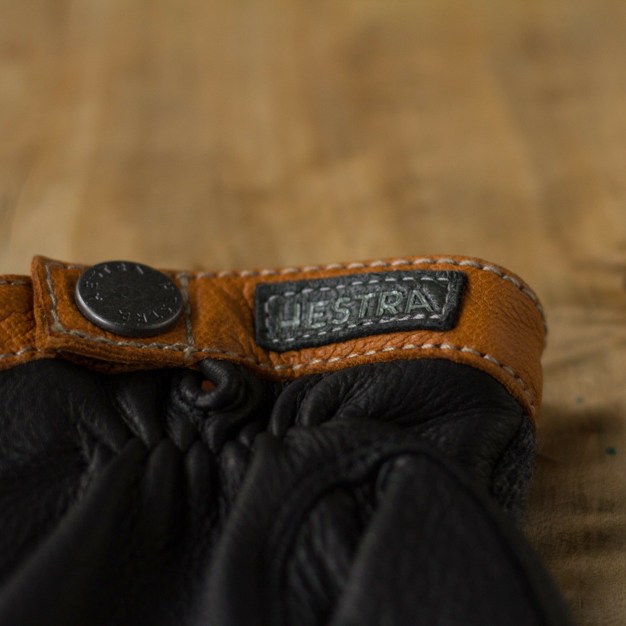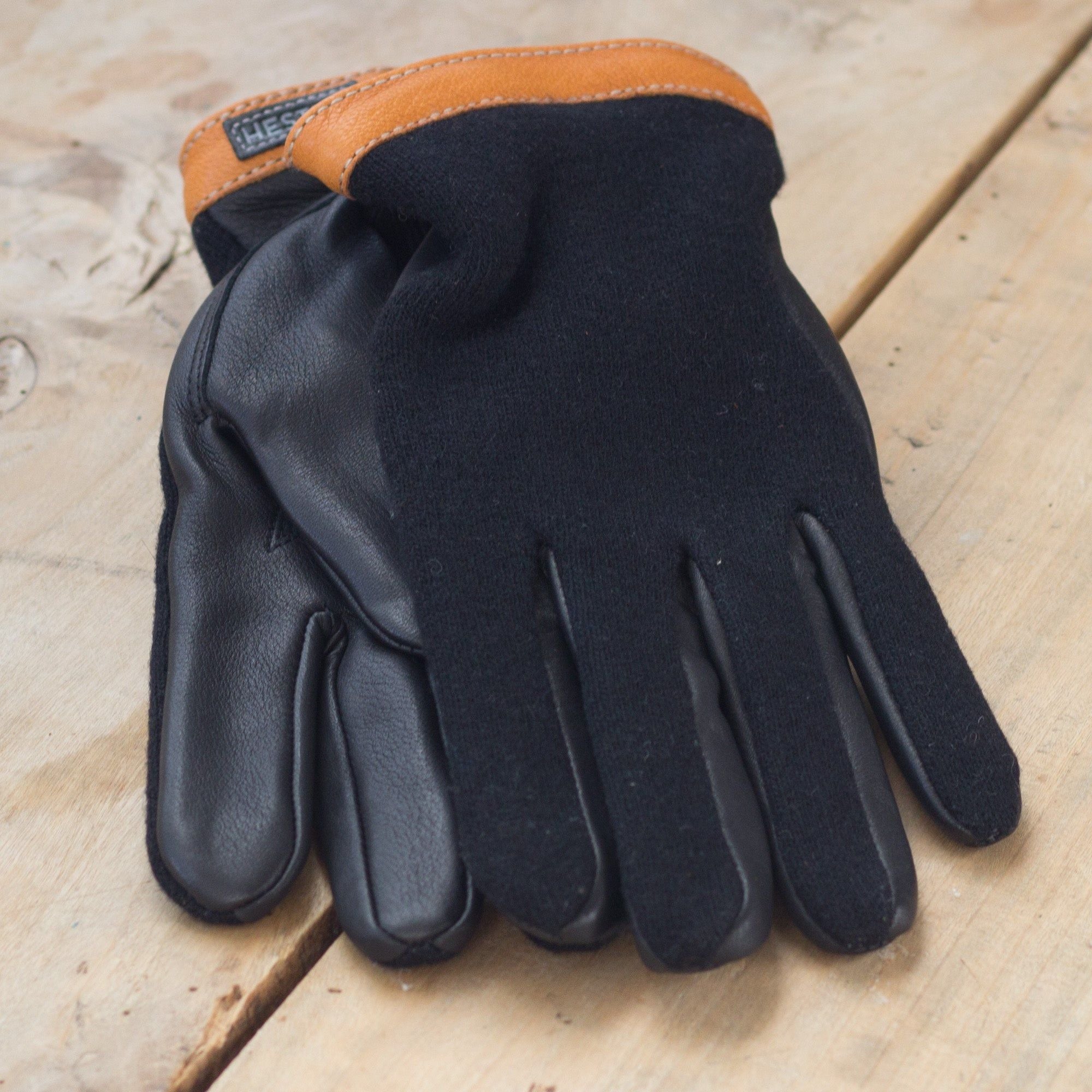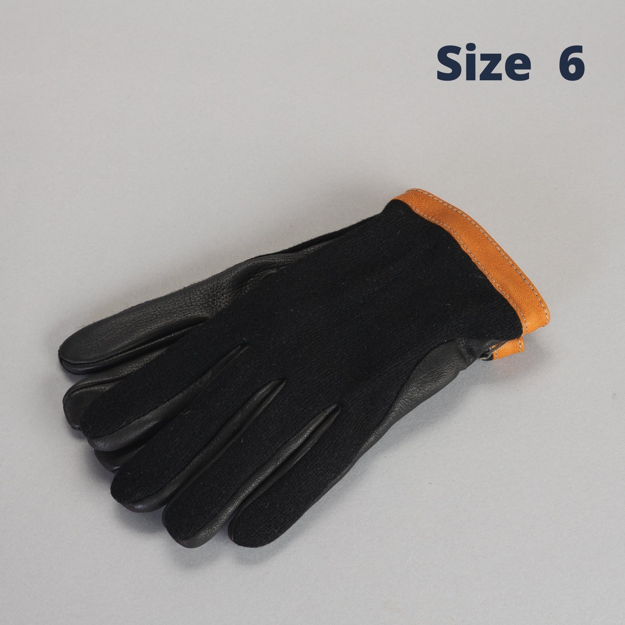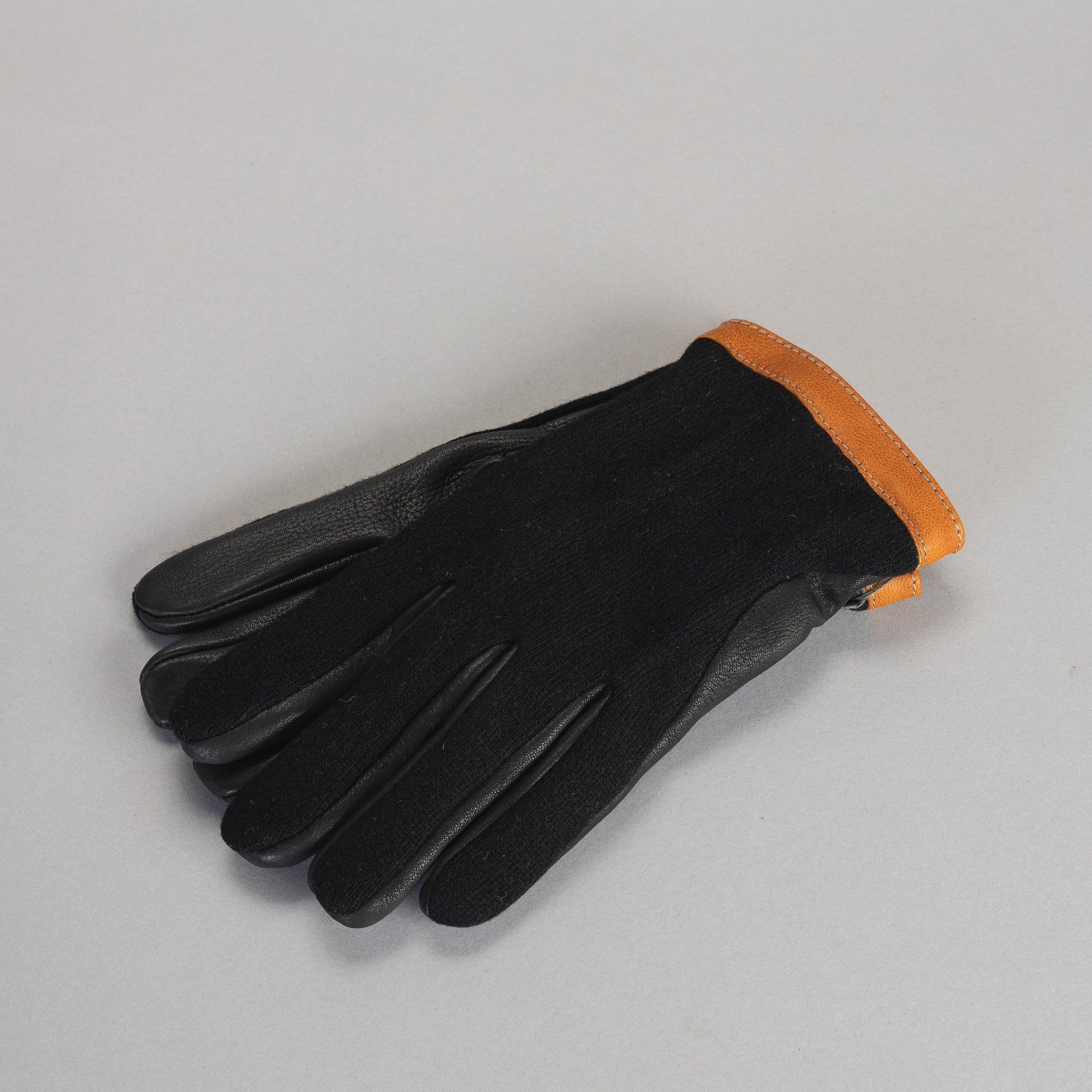 Glove in deerskin and wool tricot with warm wool lining. Vegetable-tanned goat leather on the cuff.