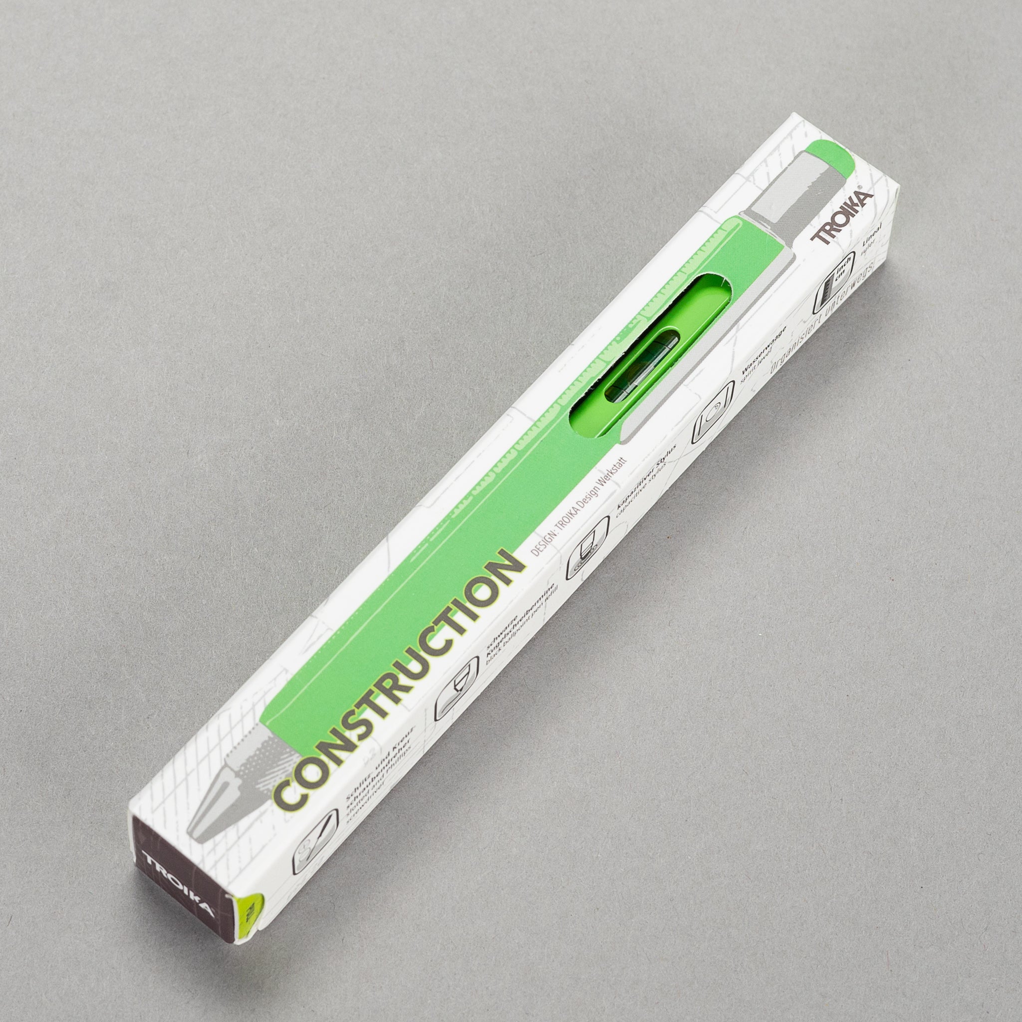 This nicely weighted ballpoint pen has six sides, which ensures a very comfortable grip when writing. The Troika construction Ballpoint features an architectural ruler in both centimetres and inches, a level, mini screwdriver with both flat-head and Phillips head, and a matching colour stylus. Surgical grip ensures easy twist action. Spare parts and refills are available. Troika's Construction Pen is available in 18 different finishes.