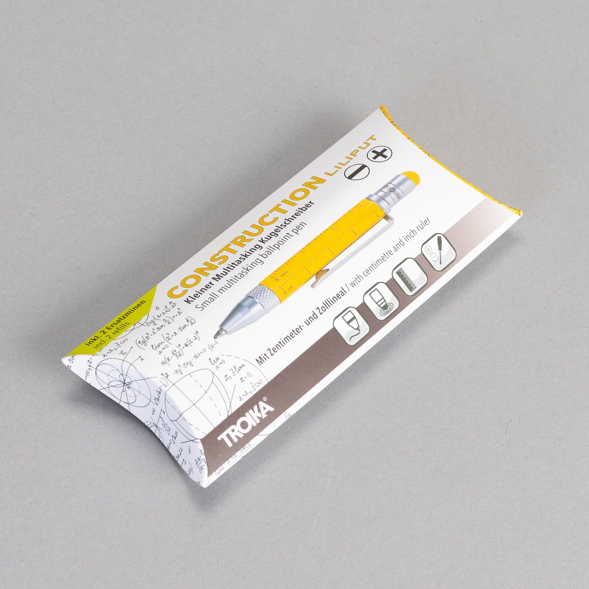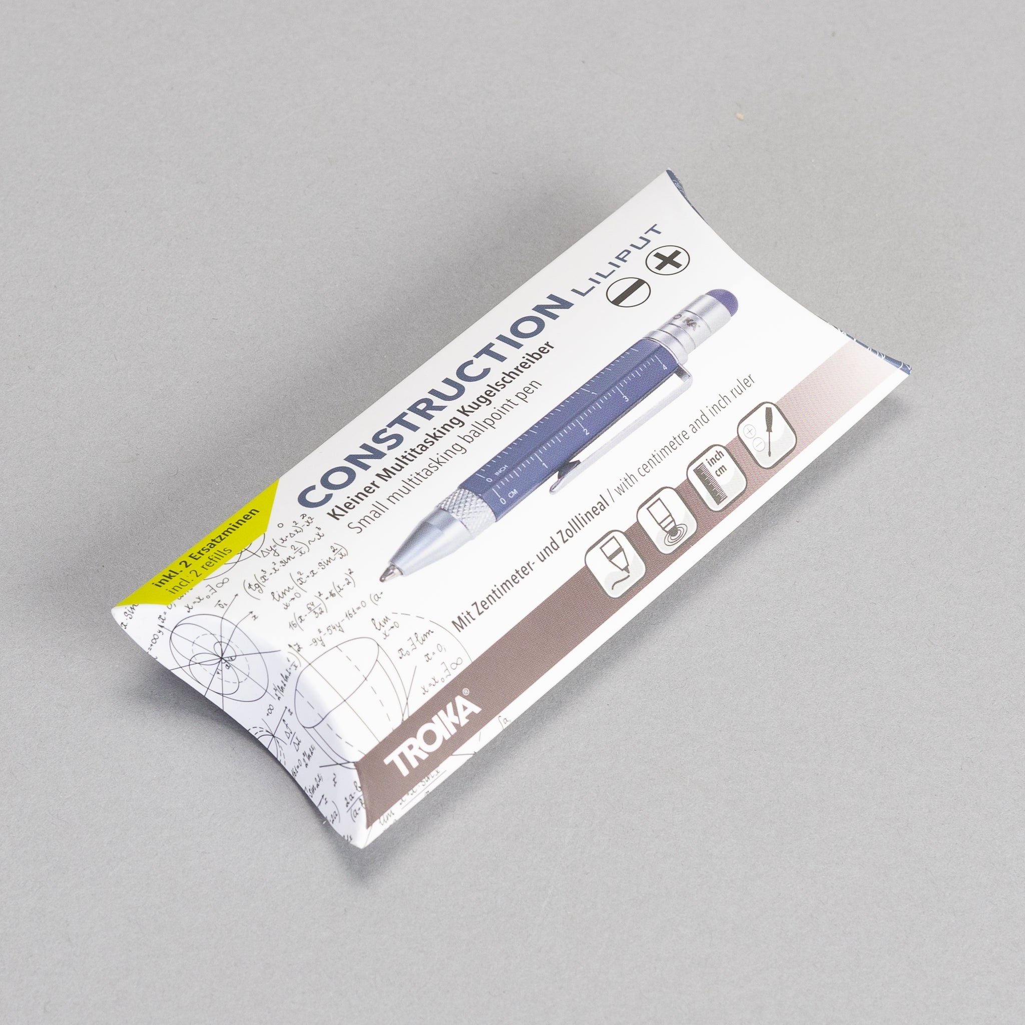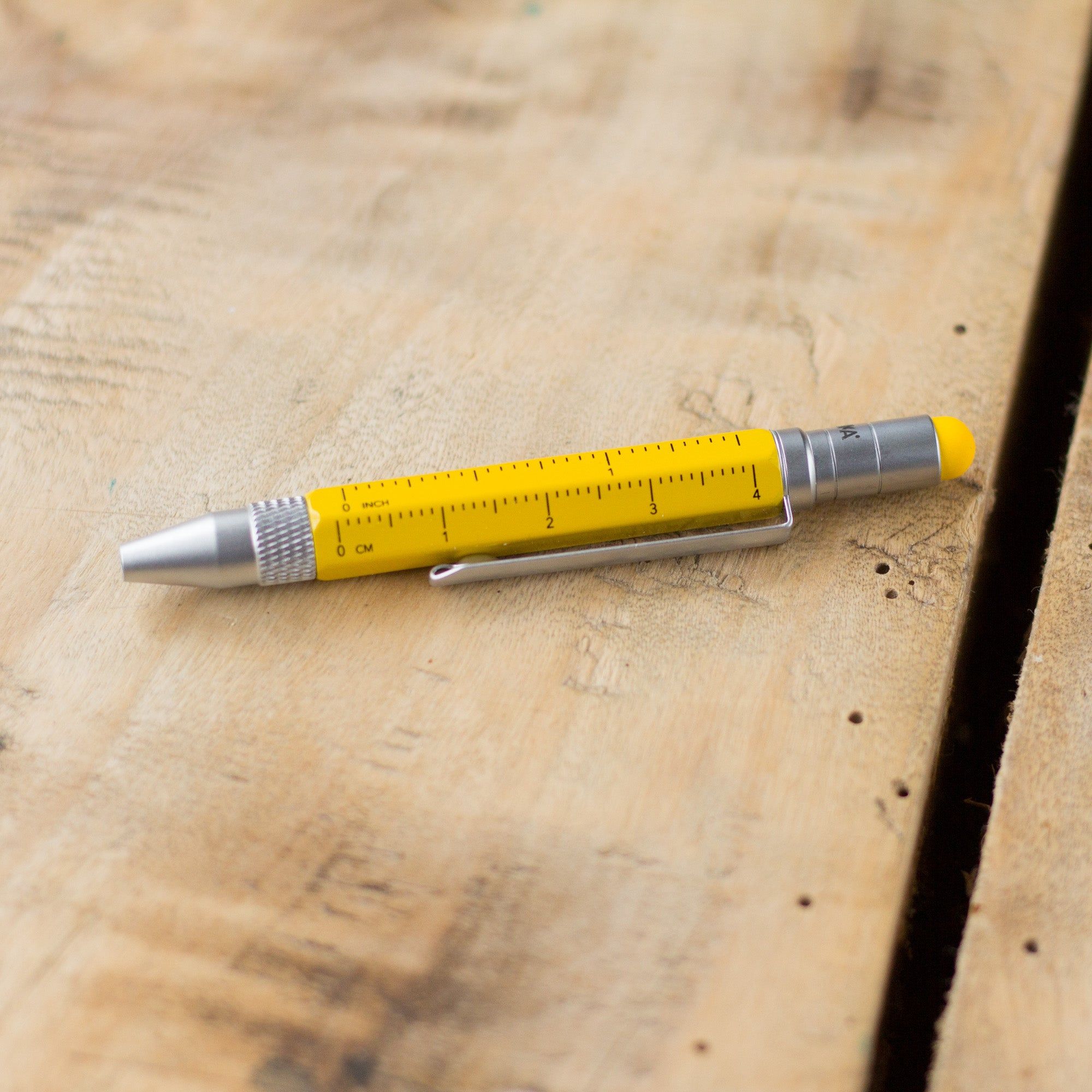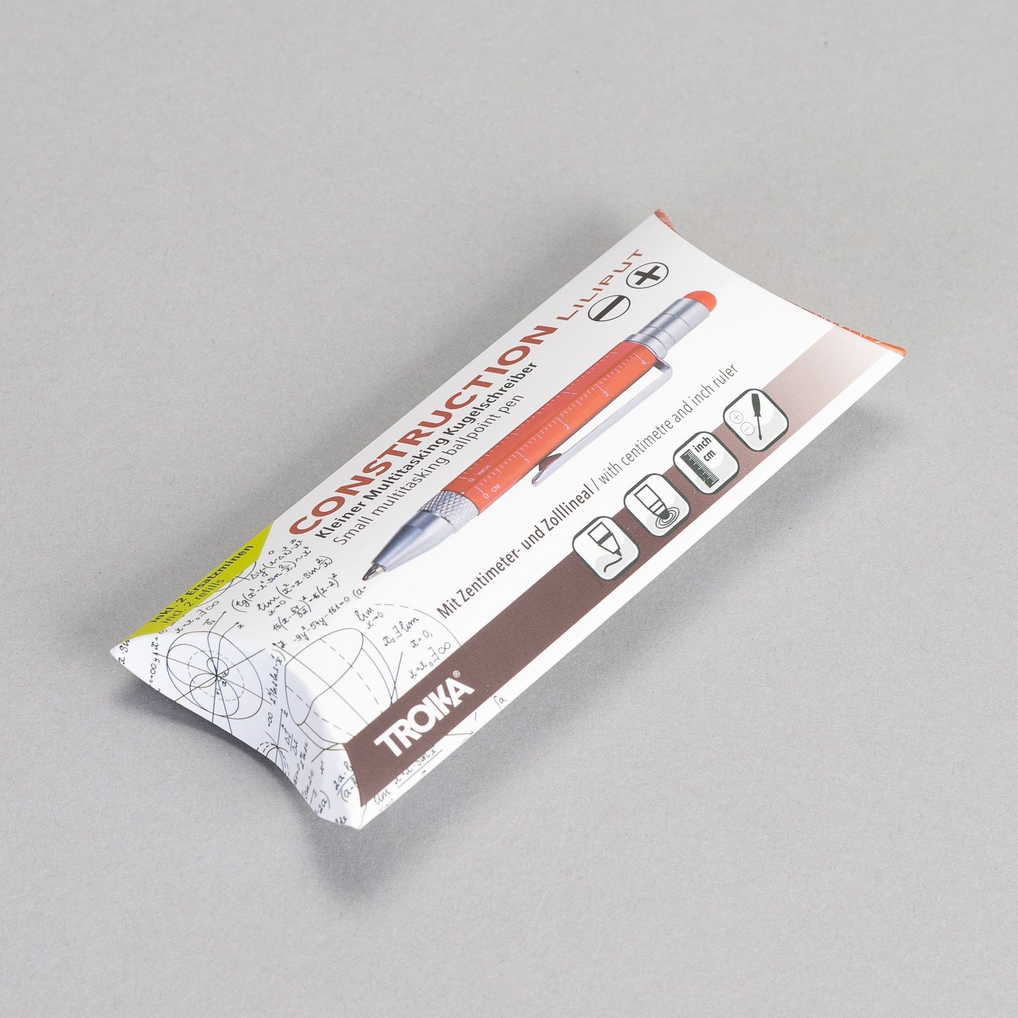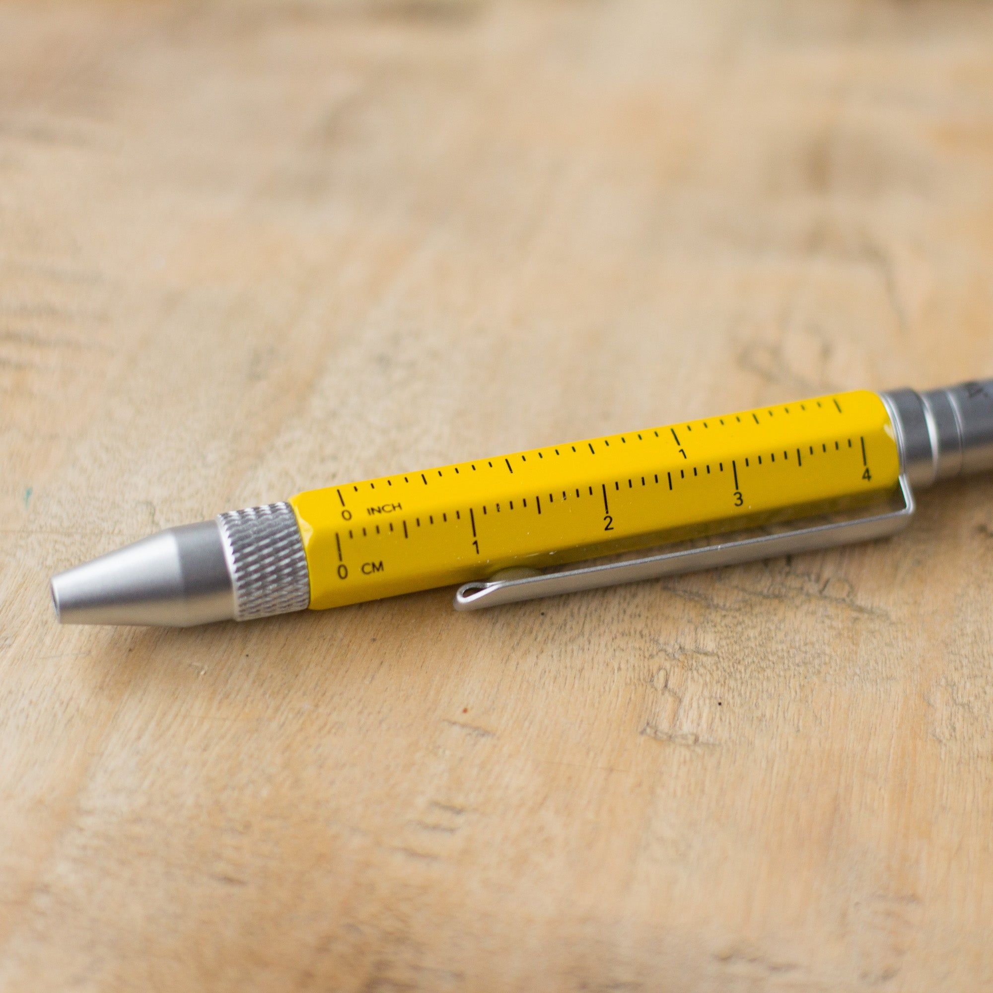 The perfect travel pen. Small and with several multitasking features. This ballpoint pen is a mini planning aid and toolbox in one - with different scales, centimetre and inch ruler, slotted/Phillips screwdriver and stylus. Fits comfortably in your wallet, wallet, shirt pocket or trouser pocket.