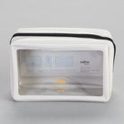 A sturdy, stylish PVC pouch with a transparent window for easy identification of the contents. It has a zipper closure and an interior and exterior pocket. Ideal for organising your smaller items, chargers, compact cameras, make-up, whatever!