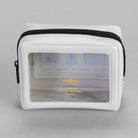 A sturdy, stylish PVC pouch with a transparent window for easy identification of the contents. It has a zipper closure and an interior and exterior pocket. Ideal for organising your smaller items, chargers, compact cameras, make-up, whatever!