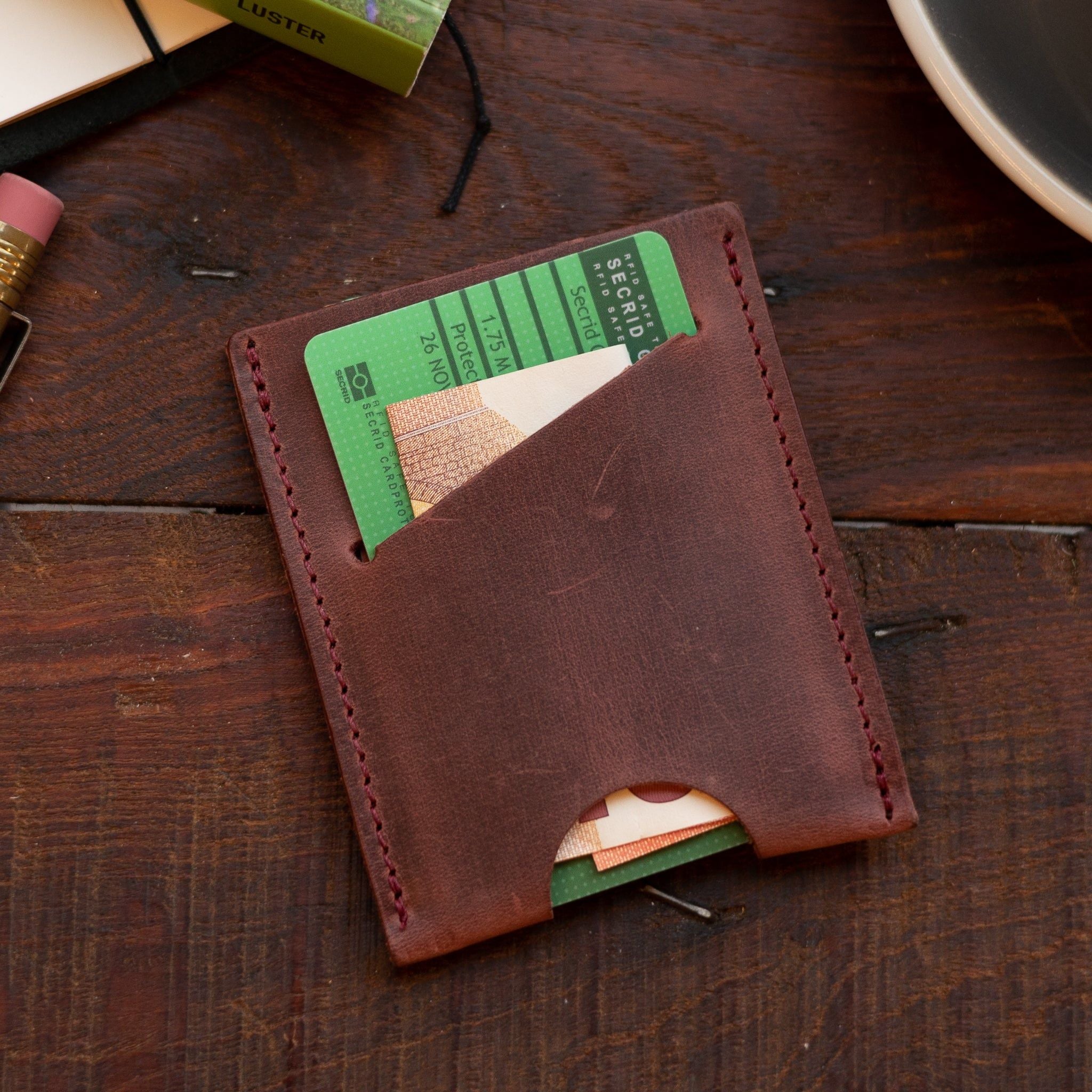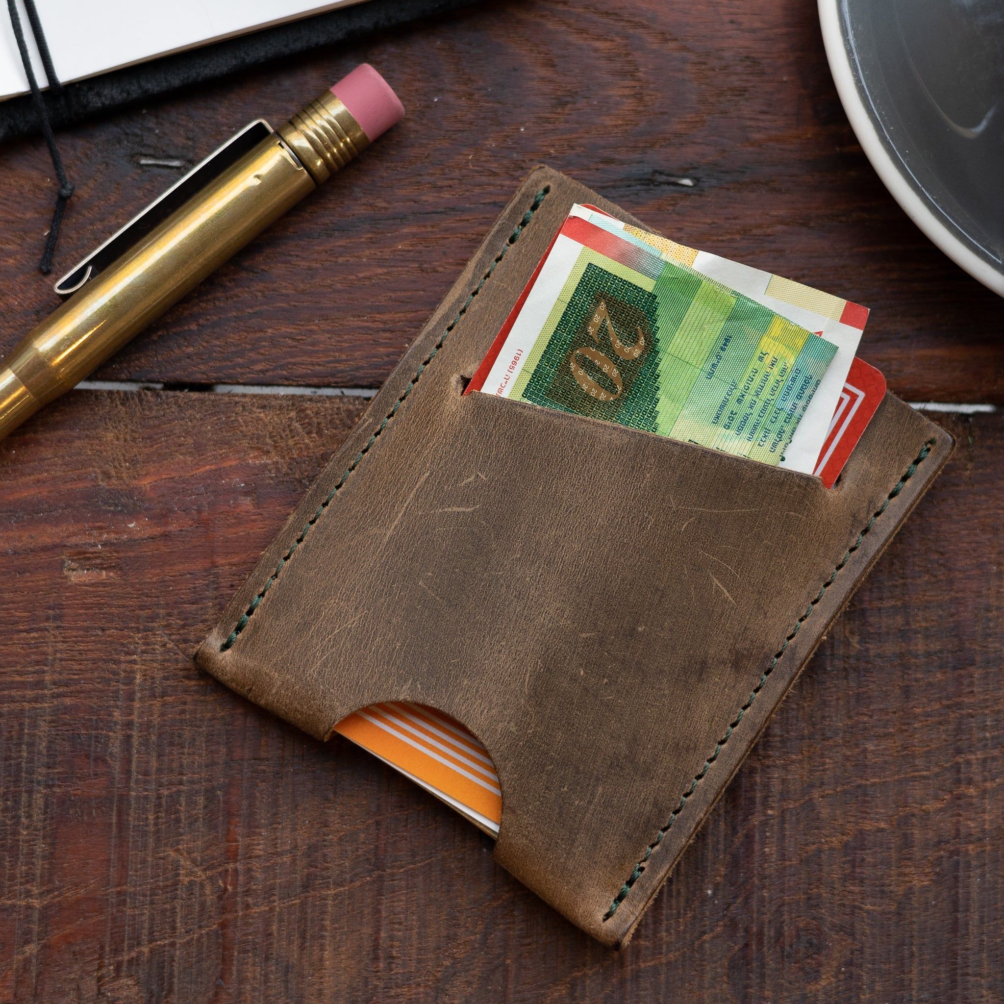 Stef, a simple cardholder made of high-quality cow leather. It fits up to 5 cards which can easily be pushed out with the little cut out at the bottom of the cardholder. Hand-made in Holland and designed to age beautifully. Make it unique with your initials.