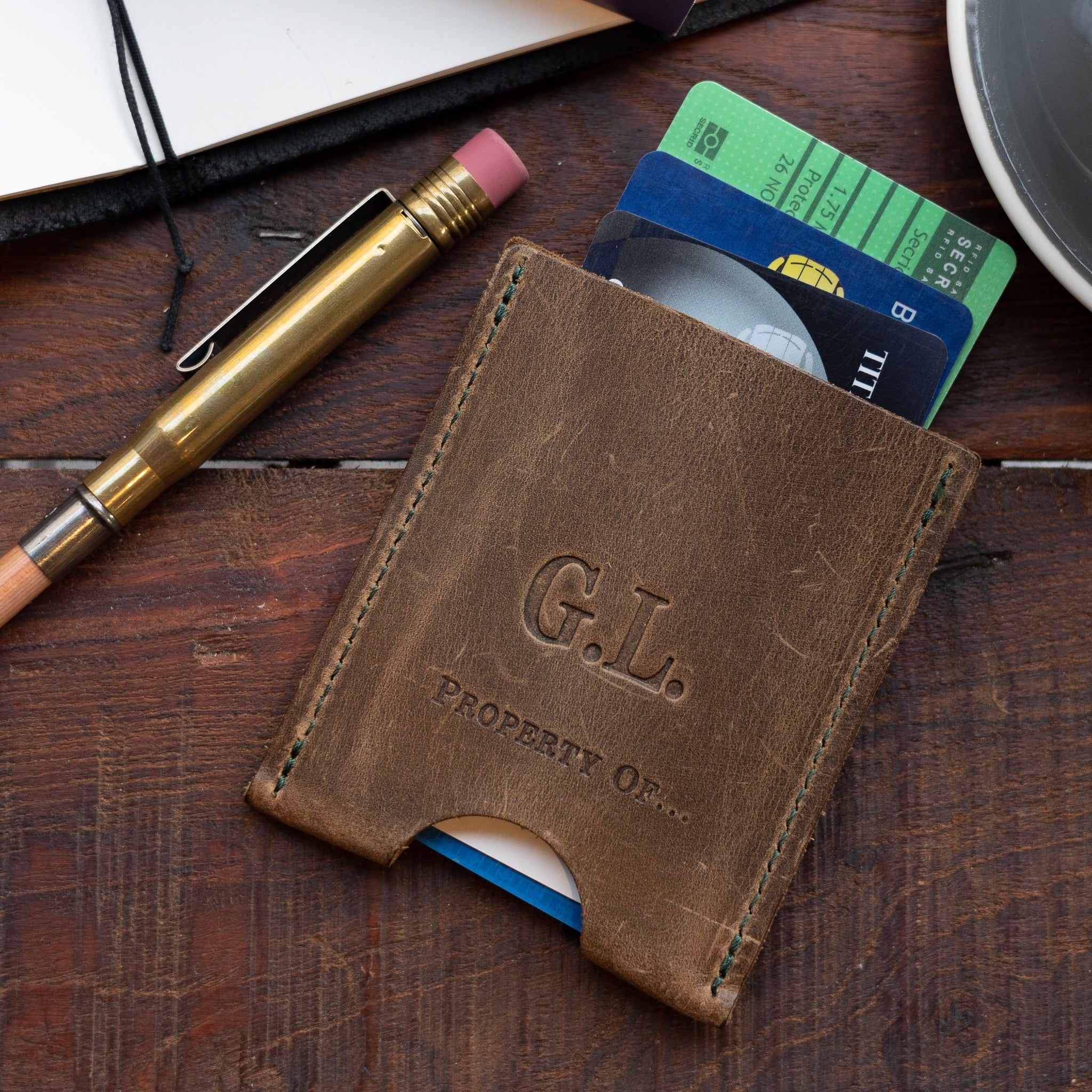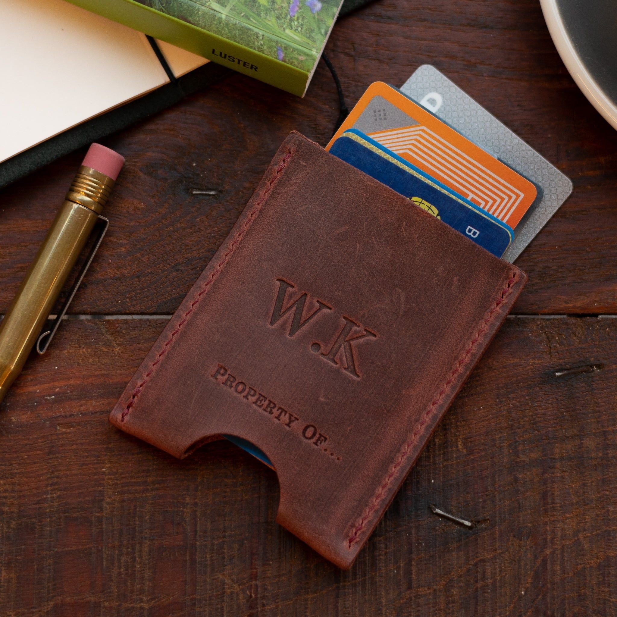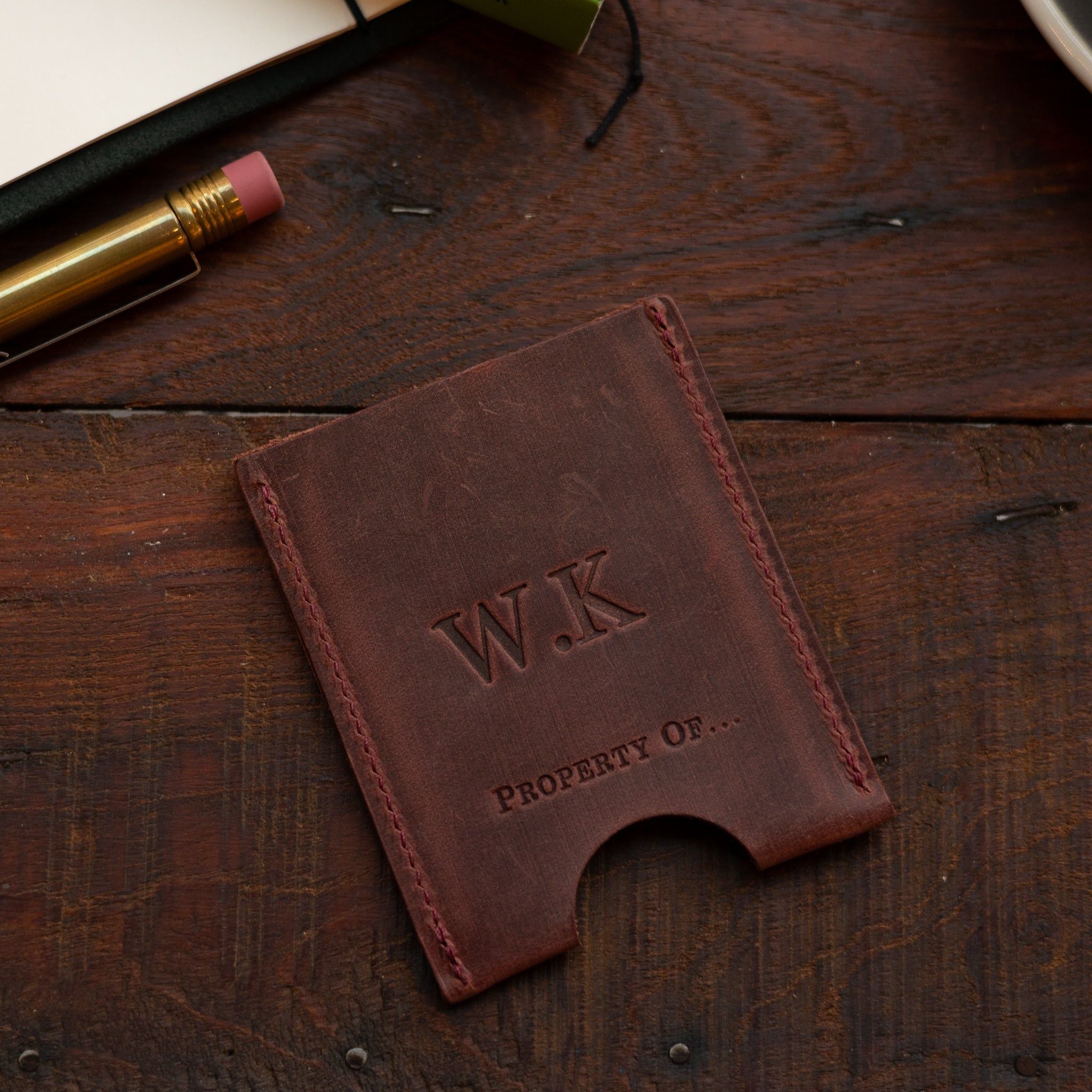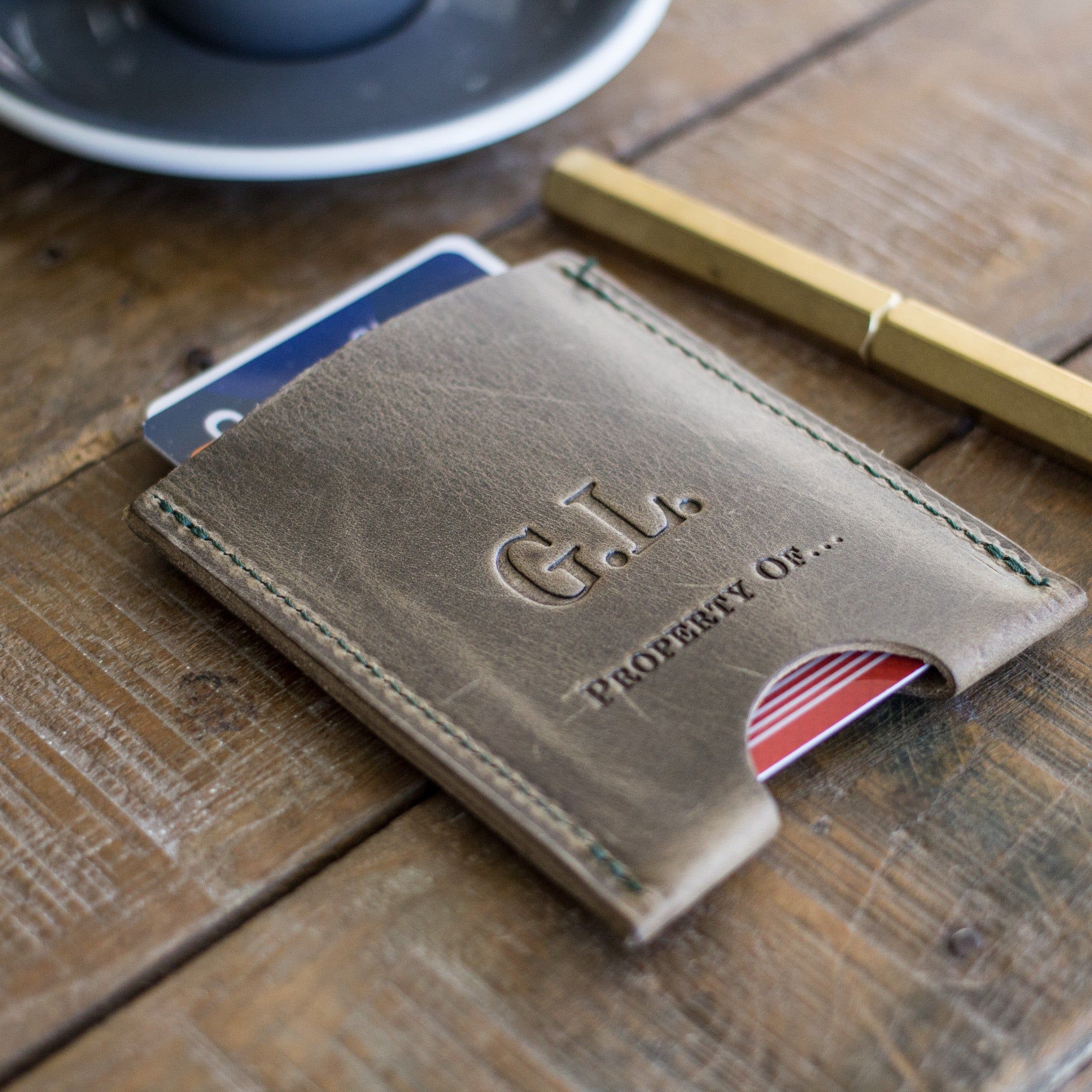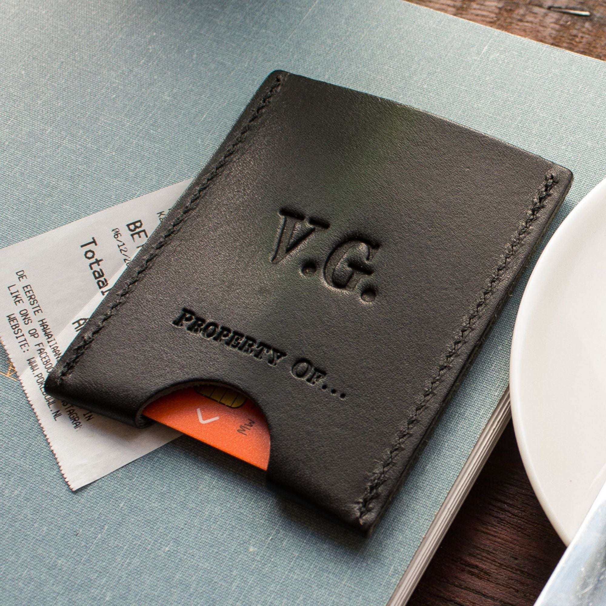 We can personalise your Stef Cardholder with your initials. We do this by hand in our Amsterdam store.