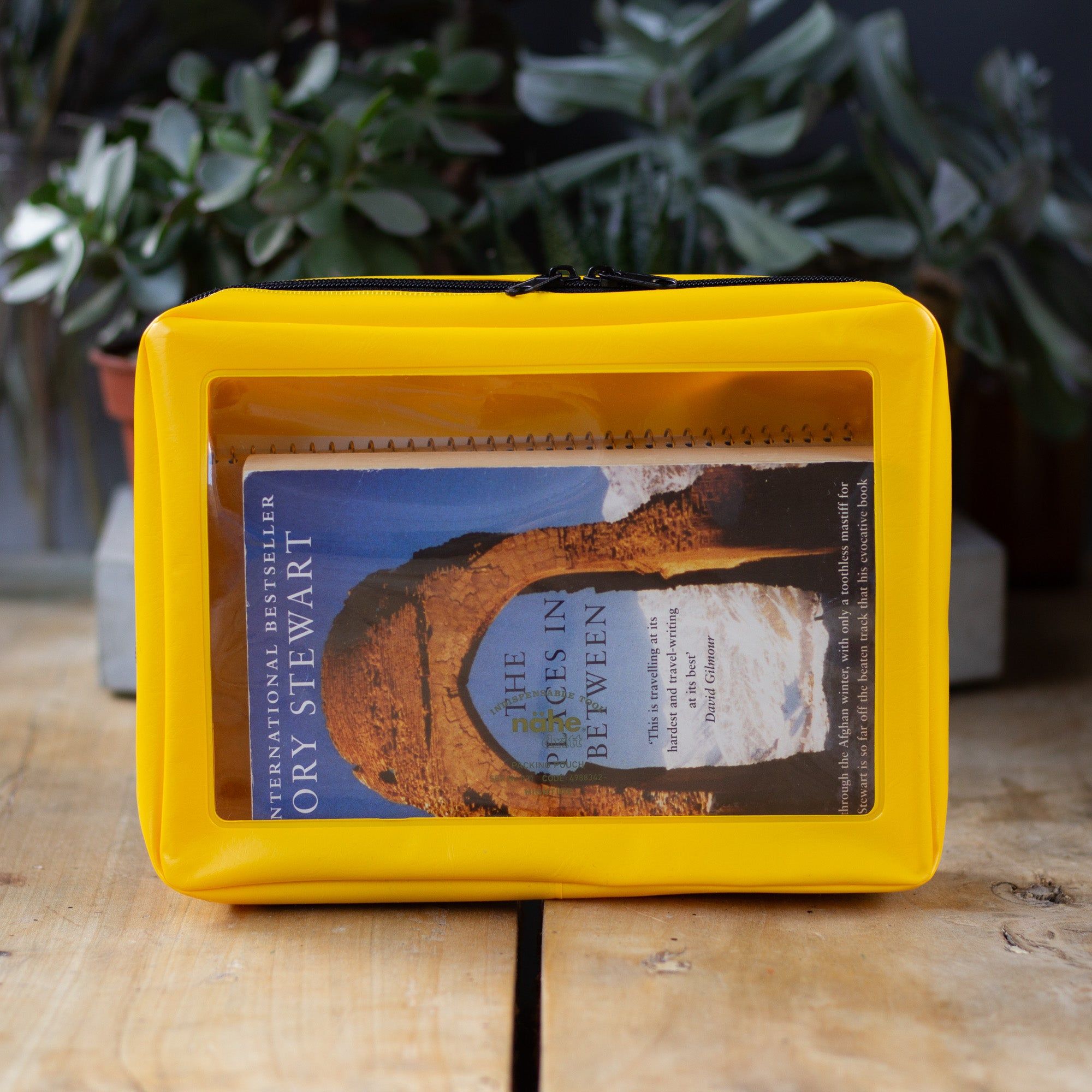 A sturdy, stylish PVC pouch with a transparent window for easy identification of the contents. It has a zipper closure and an interior and exterior pocket. Ideal for organising your smaller items, chargers, compact cameras, make-up, books, whatever!