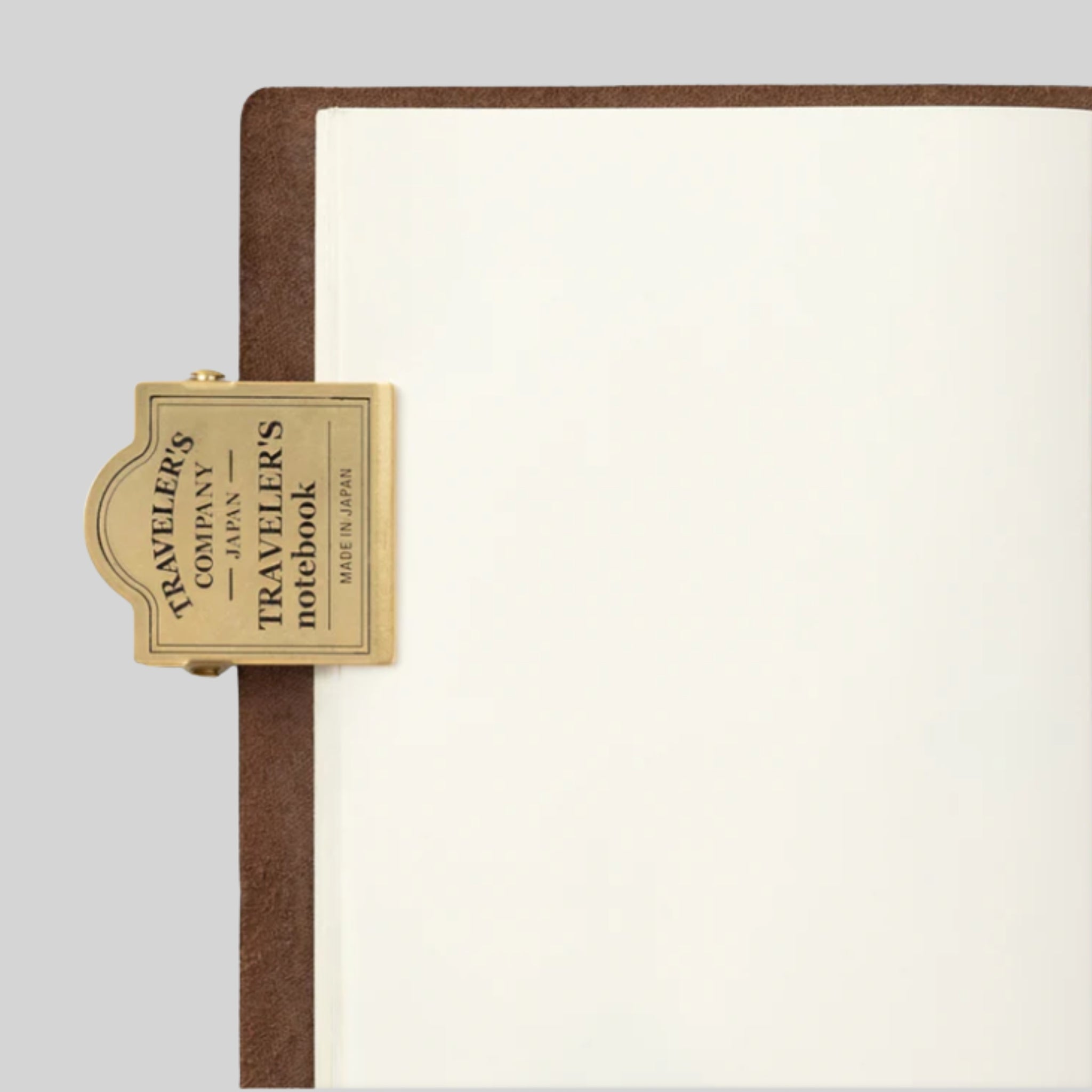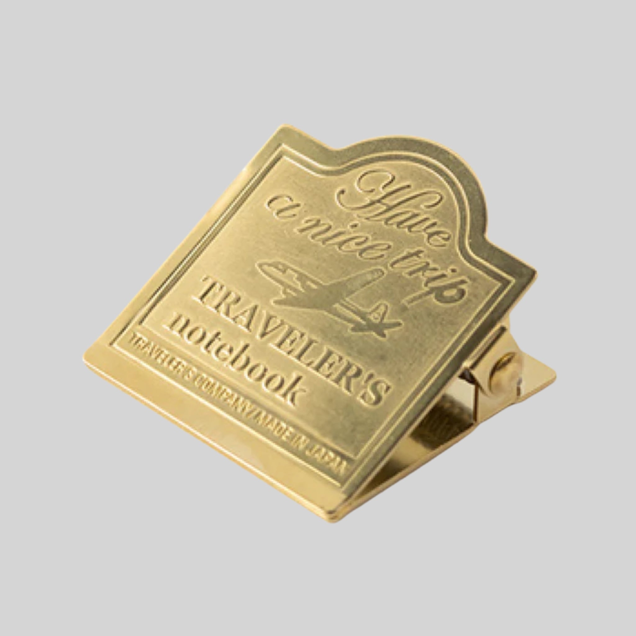 This high-quality brass clip in the classic airplane motif with the inscription "Have a Nice Trip" and "TRC Logo" was specially designed to keep your Traveler's Notebook open and flat while writing or drawing.