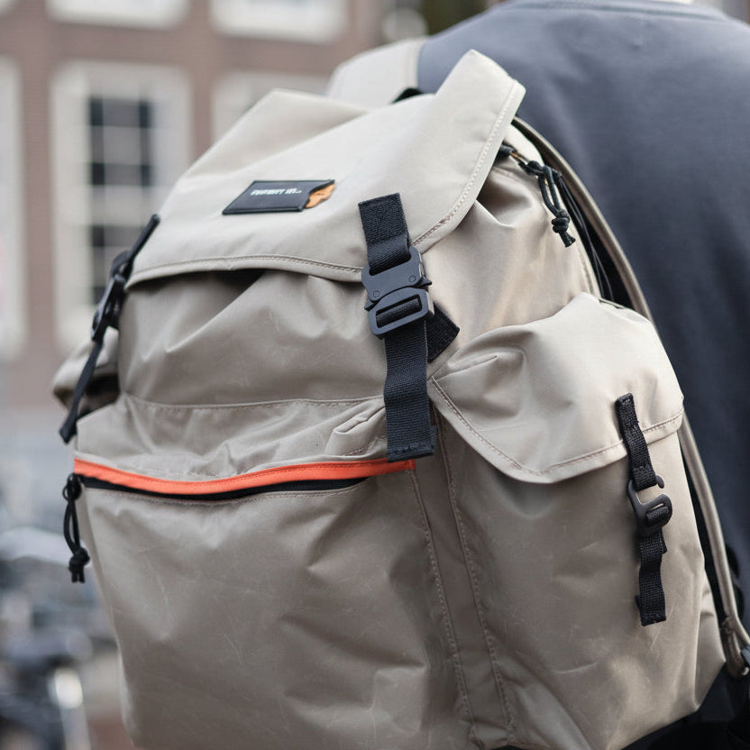 The Josh backpack is inspired by a vintage backpack that was used for the Swiss military in the 1960s. With the modern buckles, padded back panel and recycled PET bottles fabric we gave it a modern twist.
