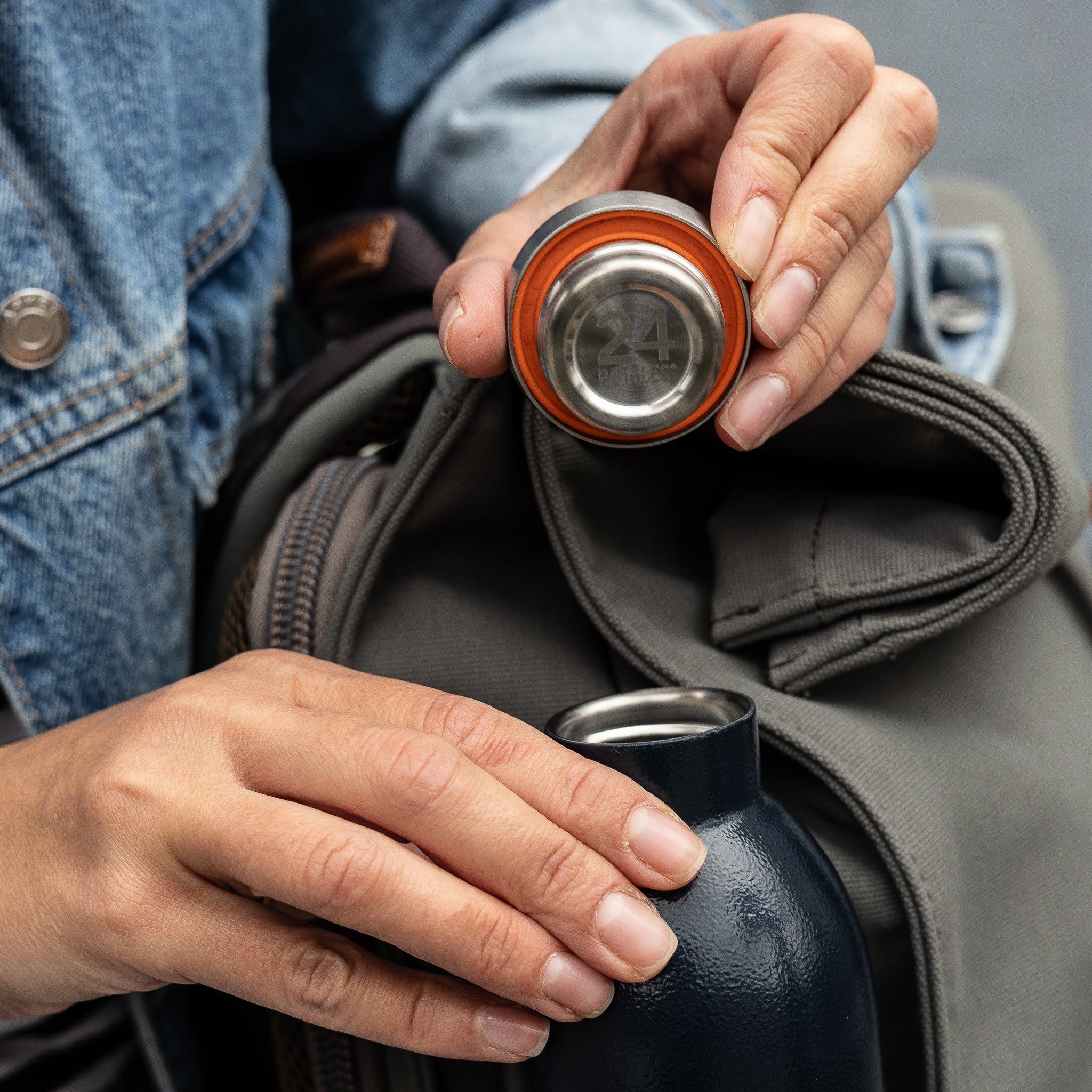 The thermos bottle CLIMA from the Italian brand 24Bottles is a great way to take your coffee and tea on a trip. It easily keeps your drinks hot for 12 hours and cold for 24 hours.