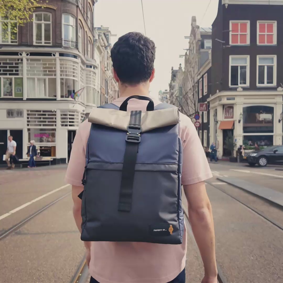 Property Of... Alex 24h Backpack stone blue sustainable travel back pack shot
