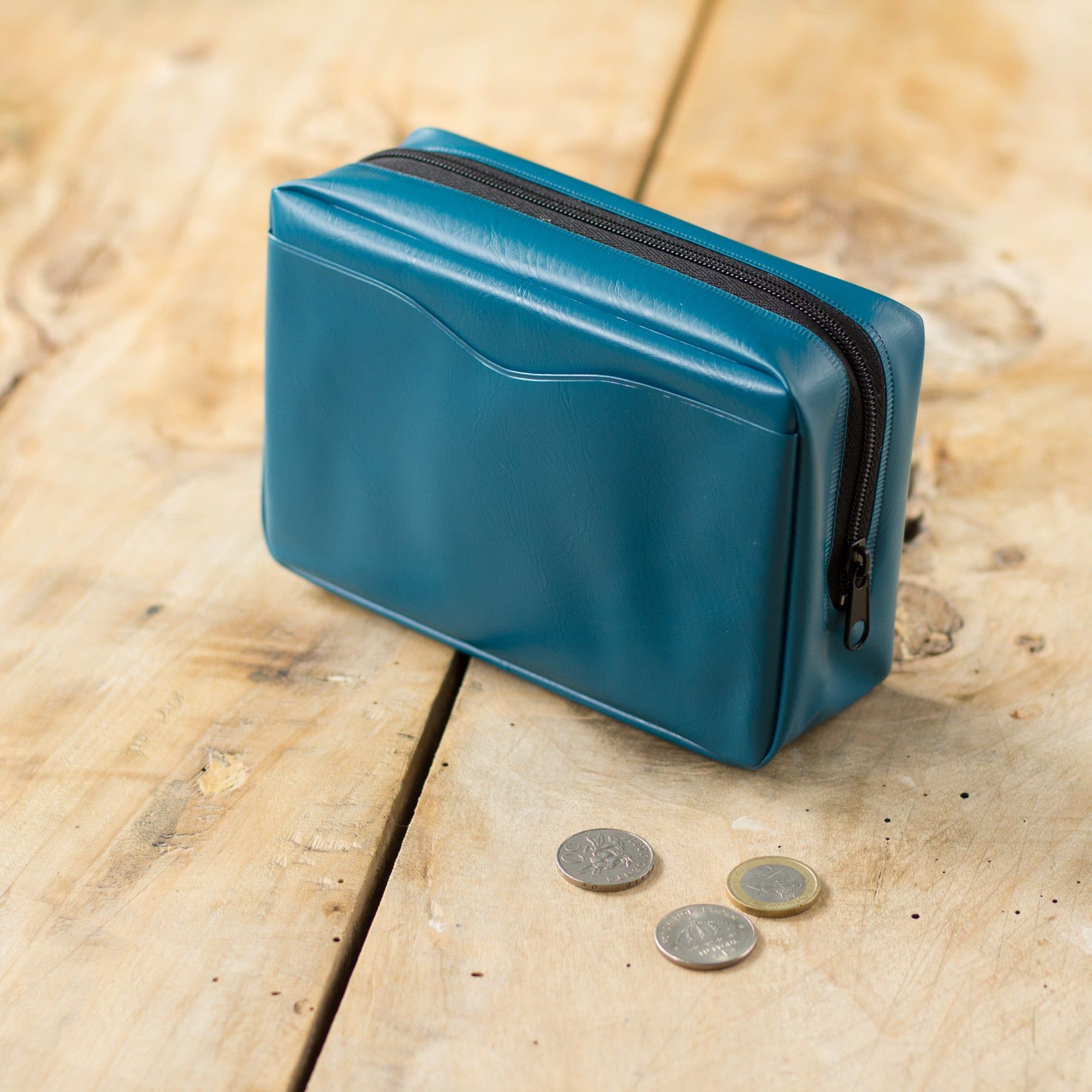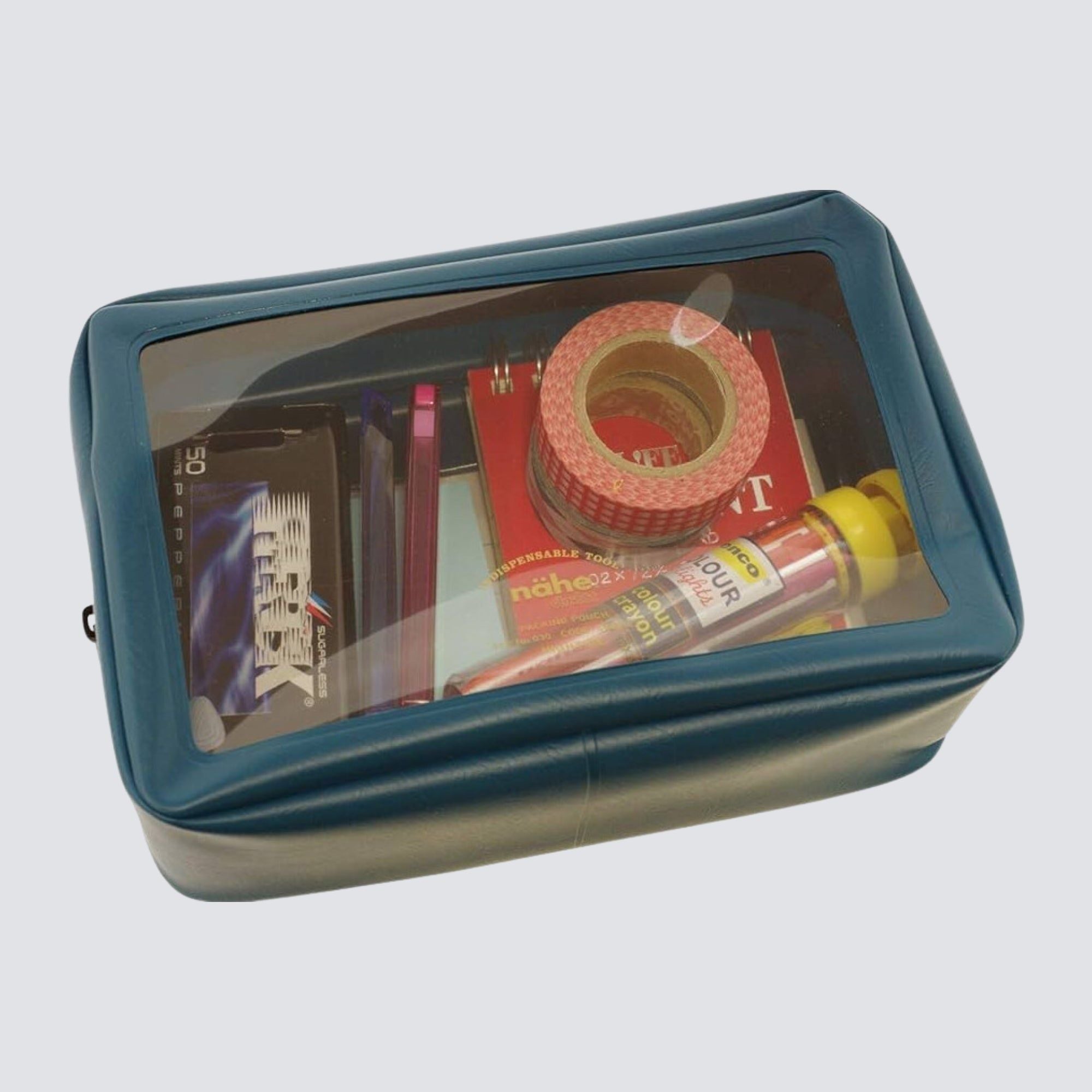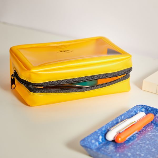 A sturdy, stylish PVC pouch with a transparent window for easy identification of the contents. It has a zipper closure and an interior and exterior pocket. Ideal for organising your smaller items, chargers, compact cameras, make-up, whatever!