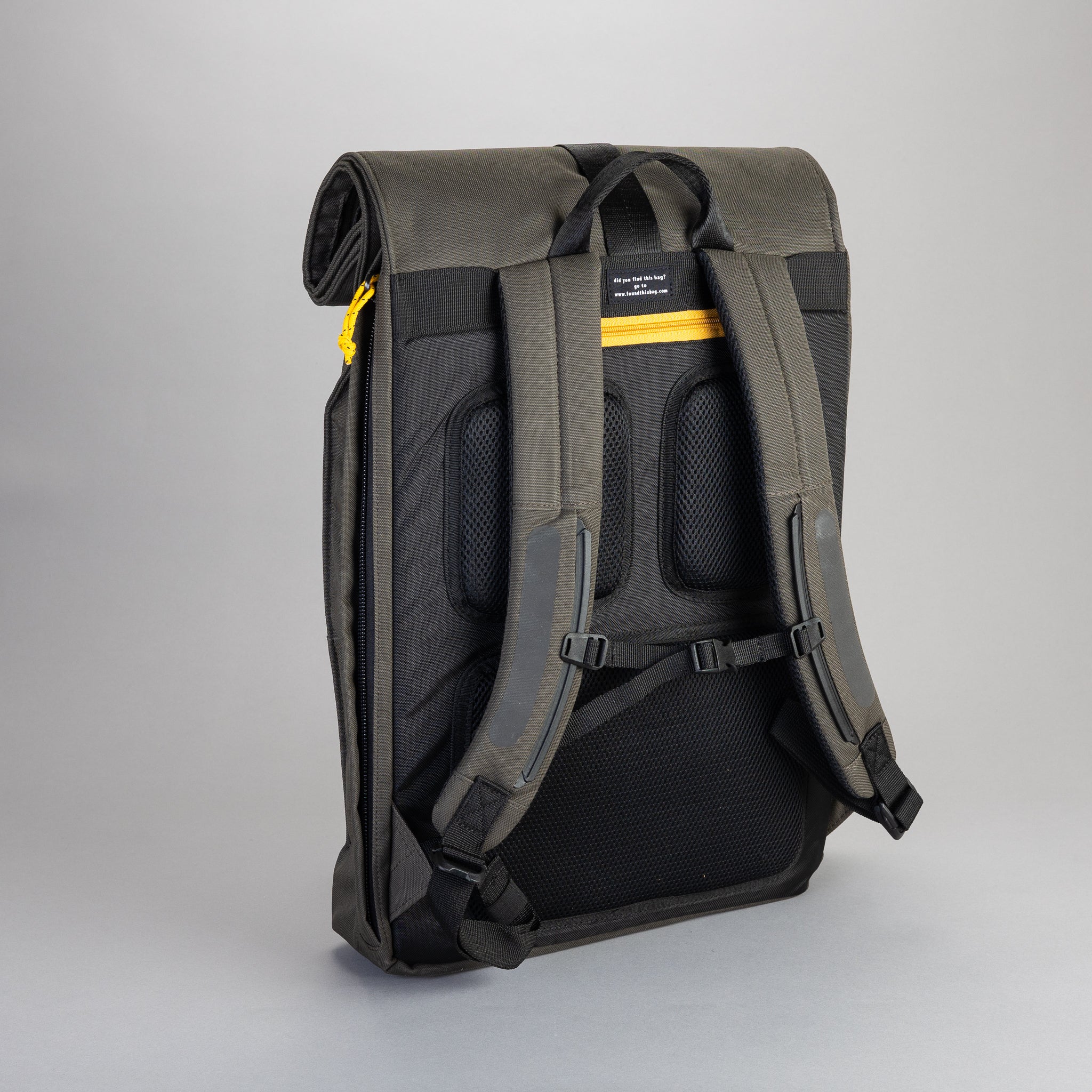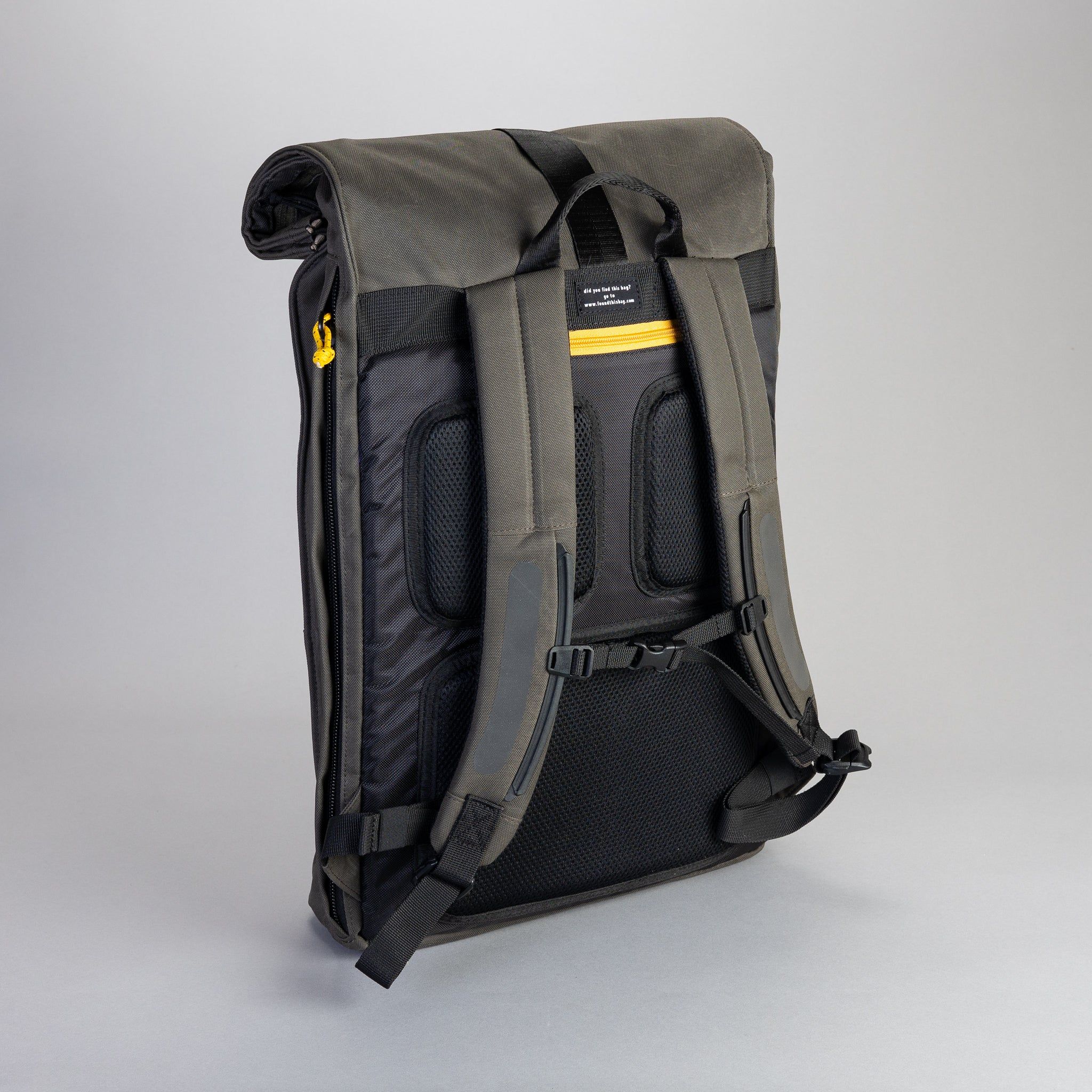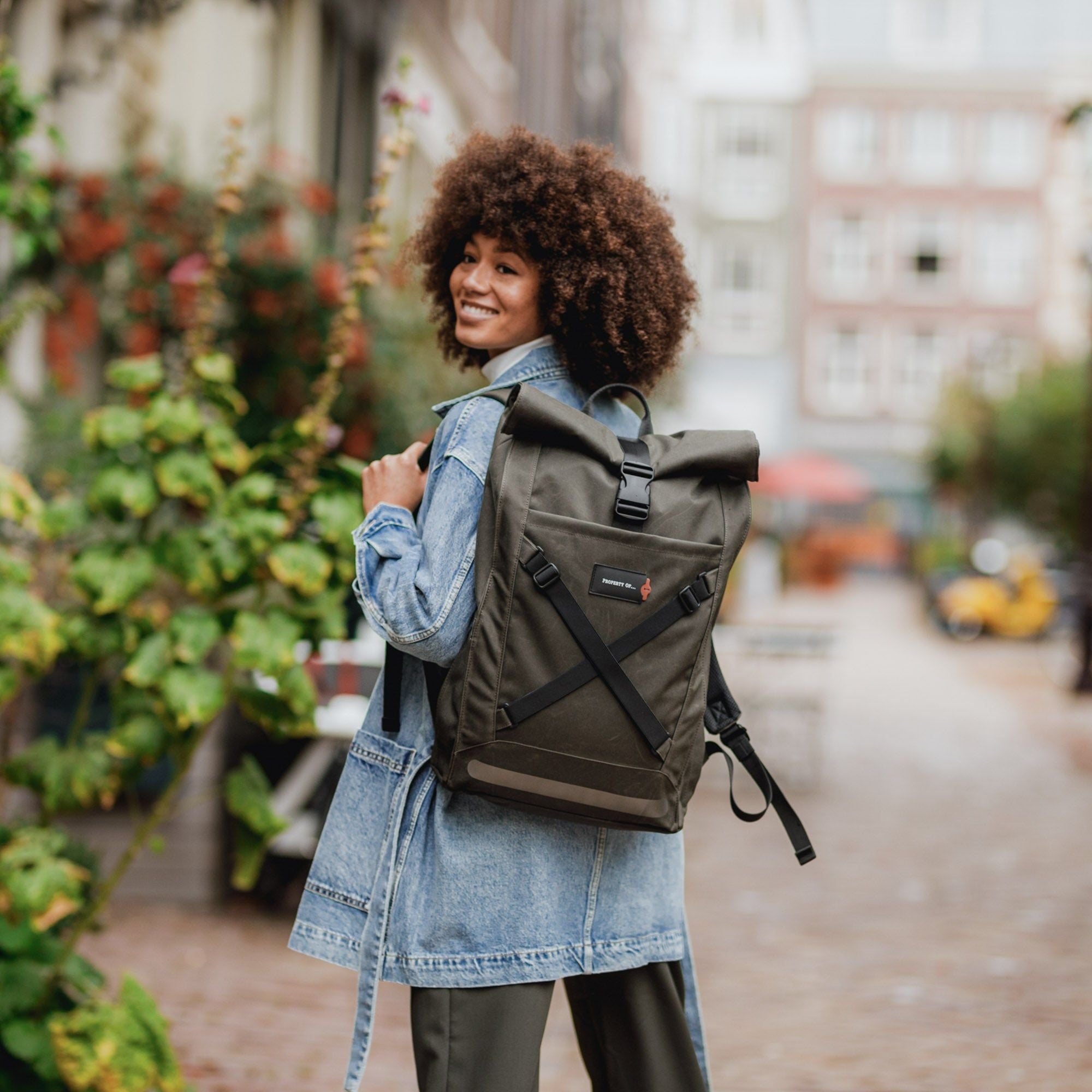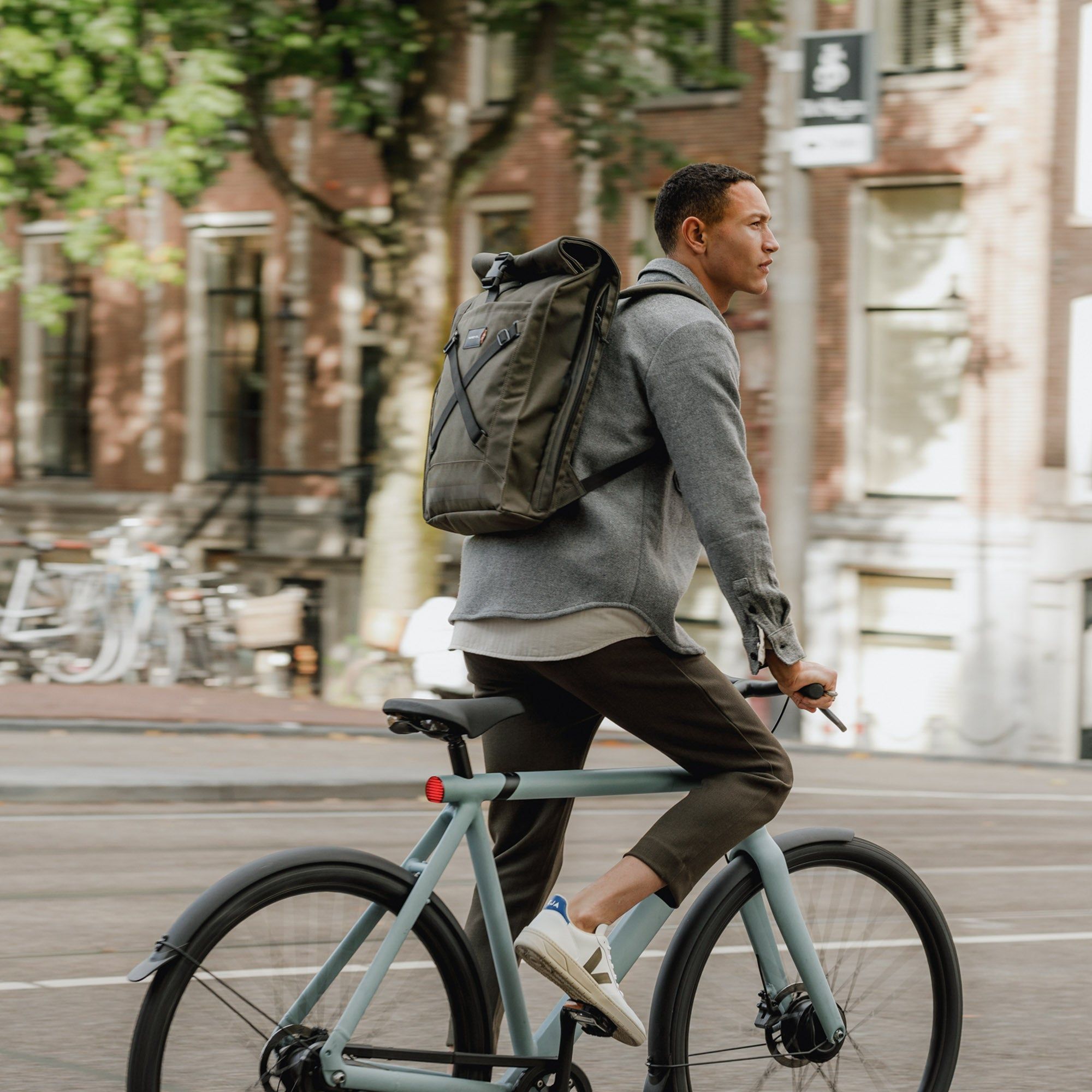 The Lenny Bike Pack is a great everyday backpack. It has a timeless, sporty look and takes you from the office, to the gym and for a quick weekend away. It has a padded 15" laptop compartment. The fabric is made from recycled PET bottles with a layer of wax to make it even more waterproof. To keep you safe at night, we added highly reflective strips on the back and on the shoulder straps. The Lenny Bike Pack (as the rest of the Amsterdam Series) is completely vegan.